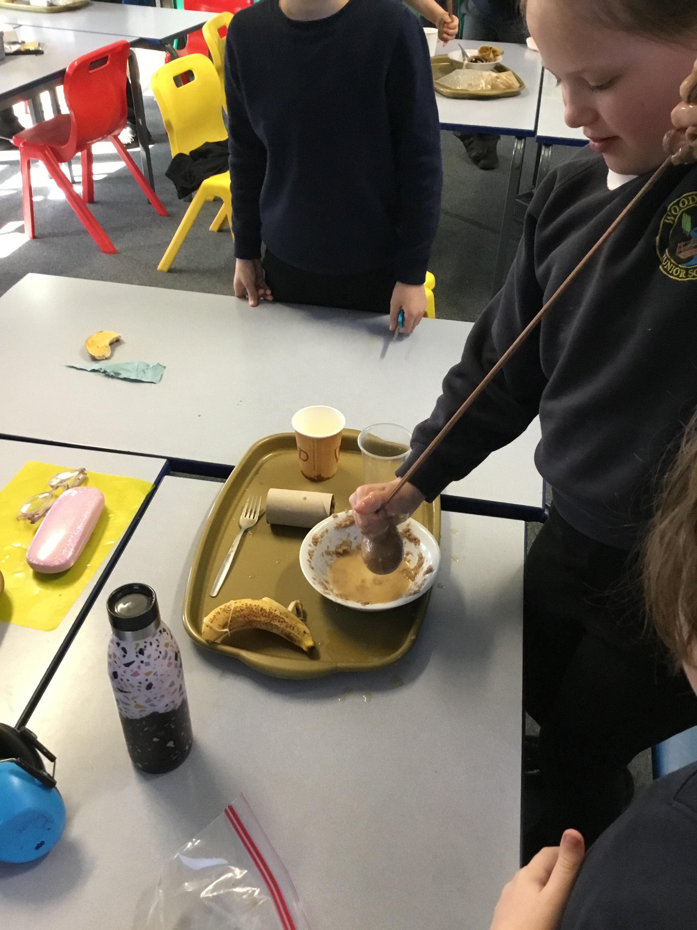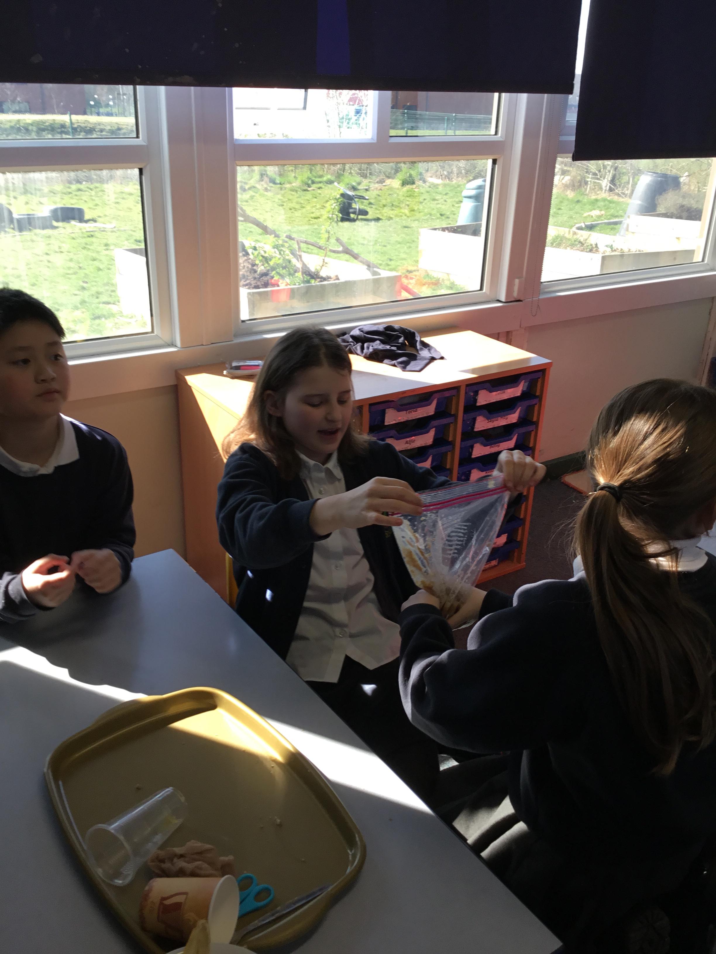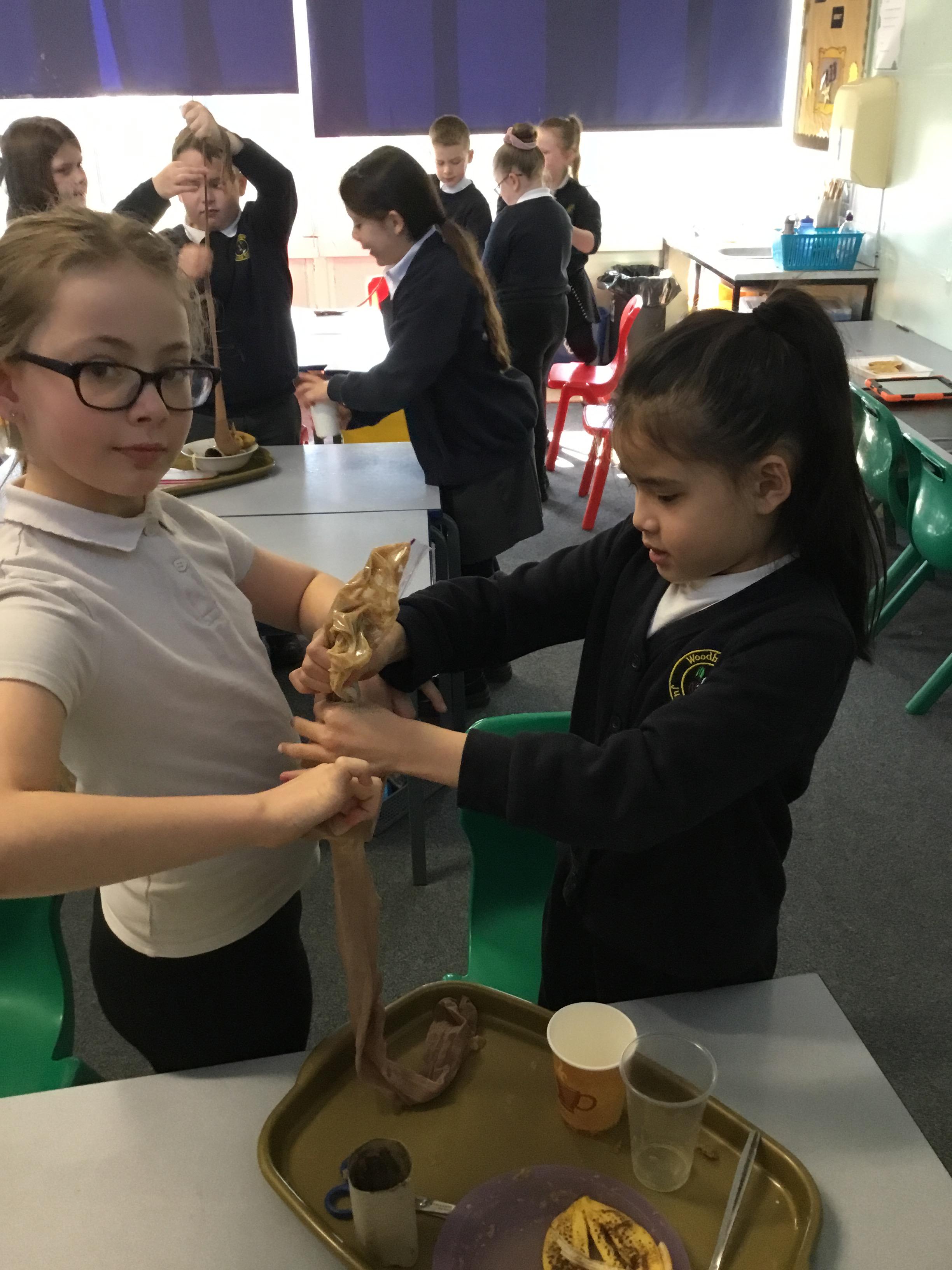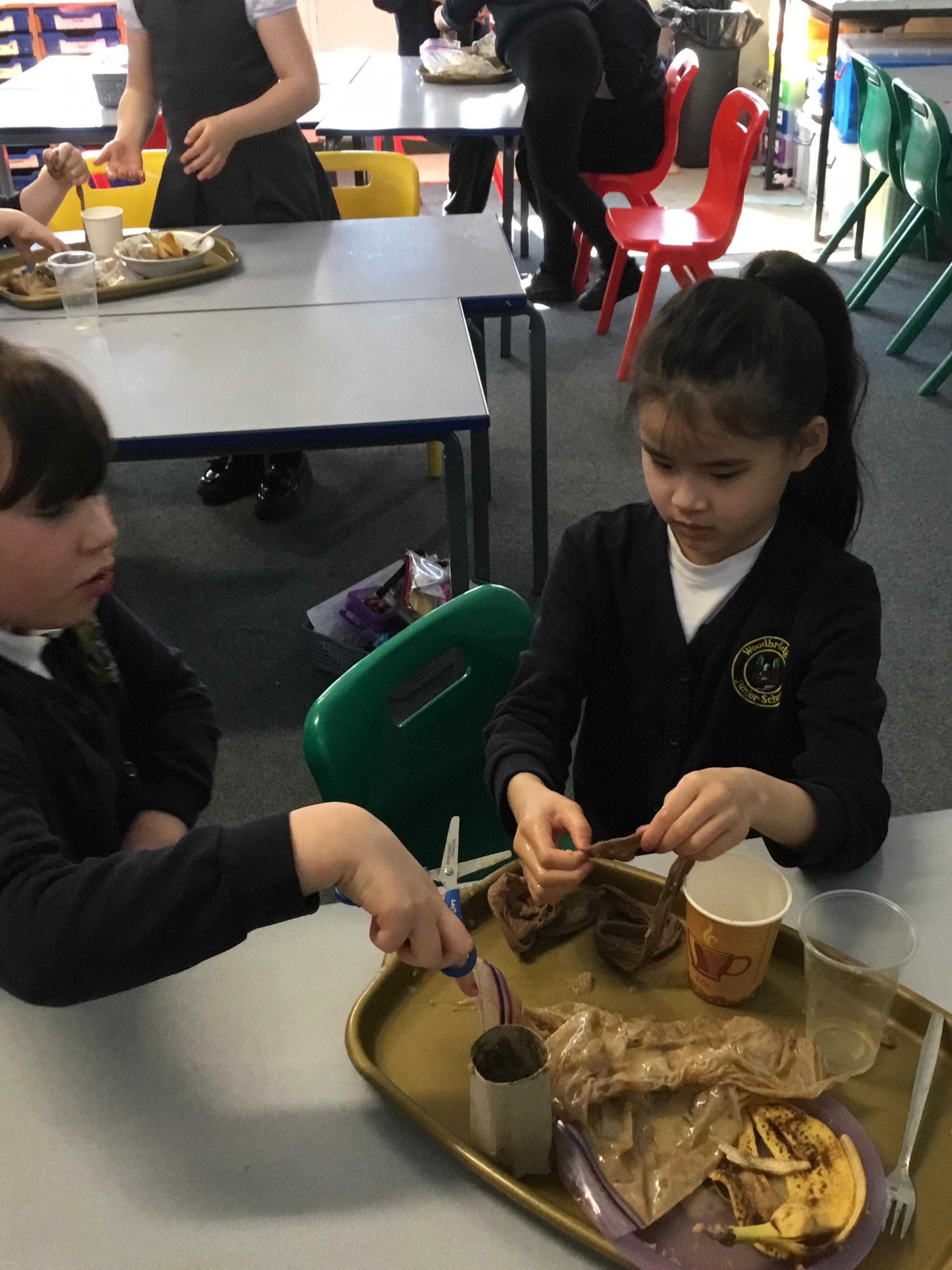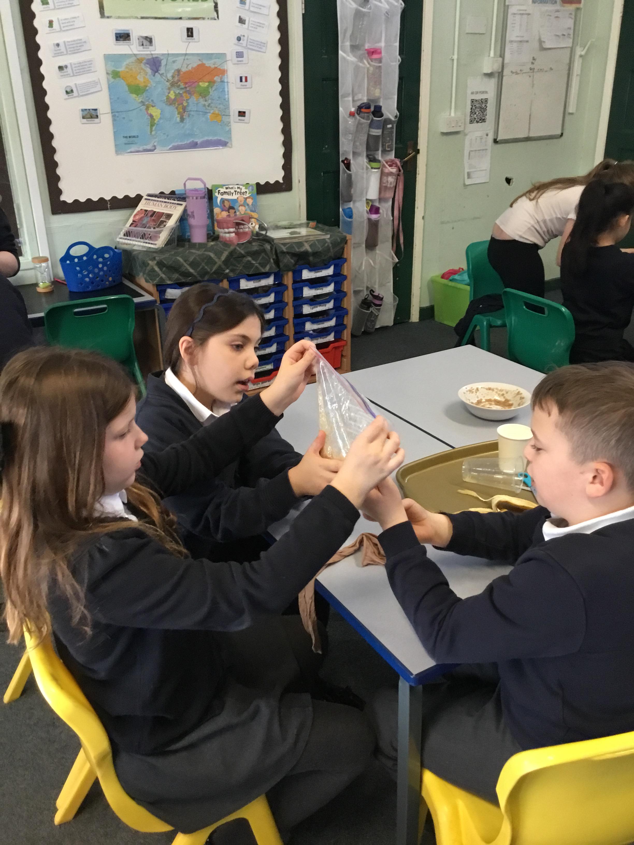 In Science, we have been learning all about the amazing digestive system. We have found out what happens to our food from the moment we eat it to the moment it exits our body at the the end of the process. Today we got practical and made our own version of the digestive system using bananas and wheatabix, with a little help from tights, tubes, bags and orange juice!