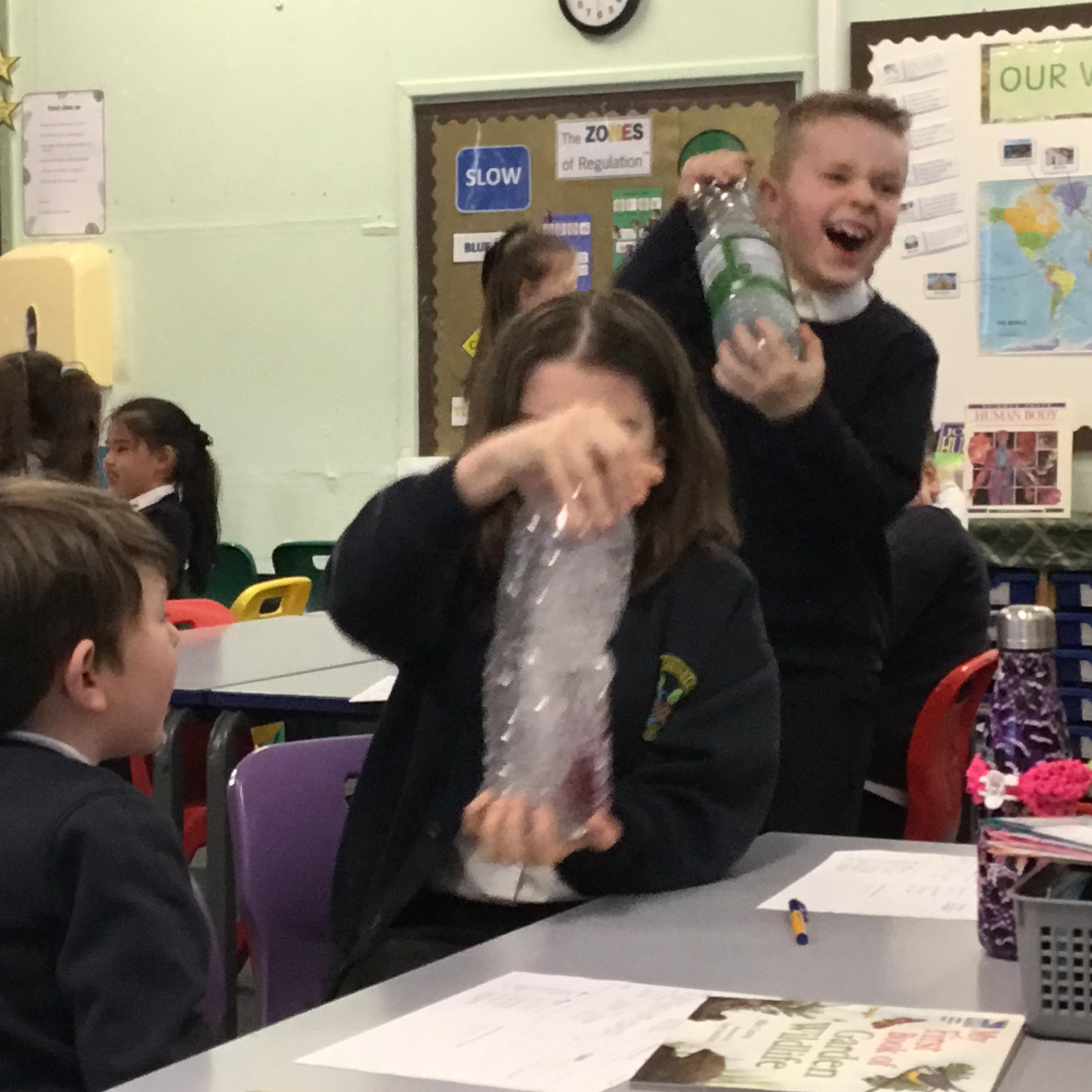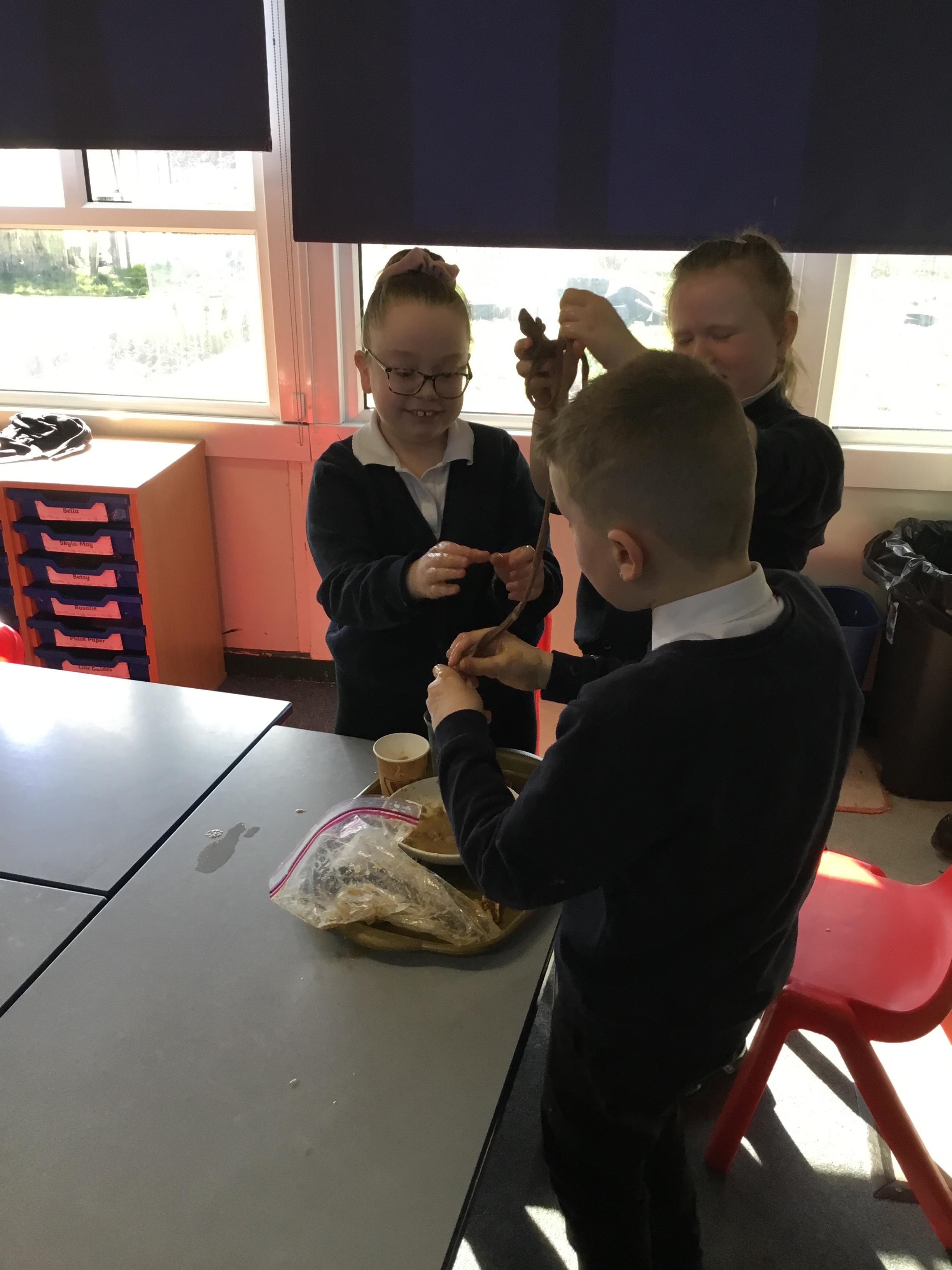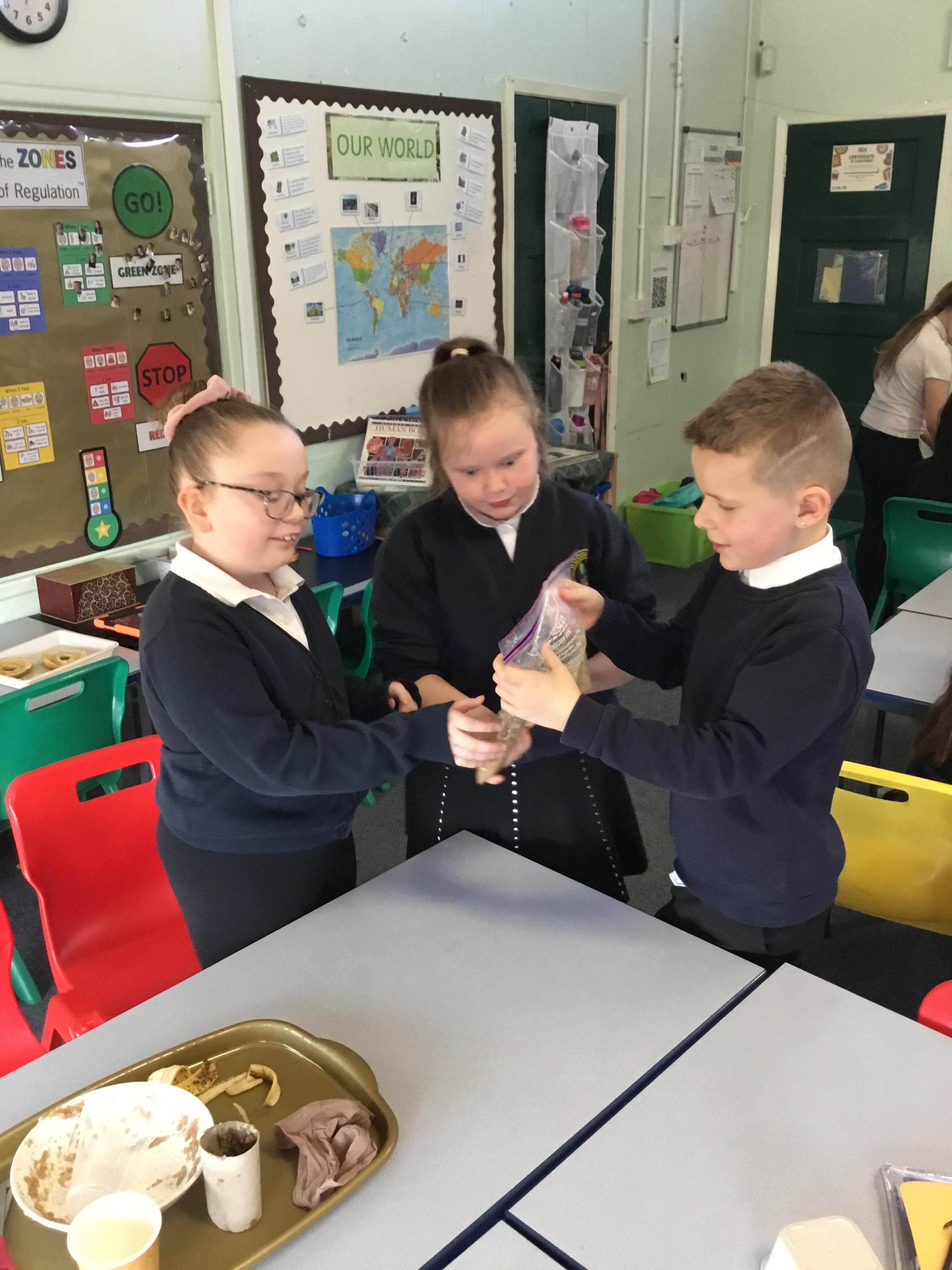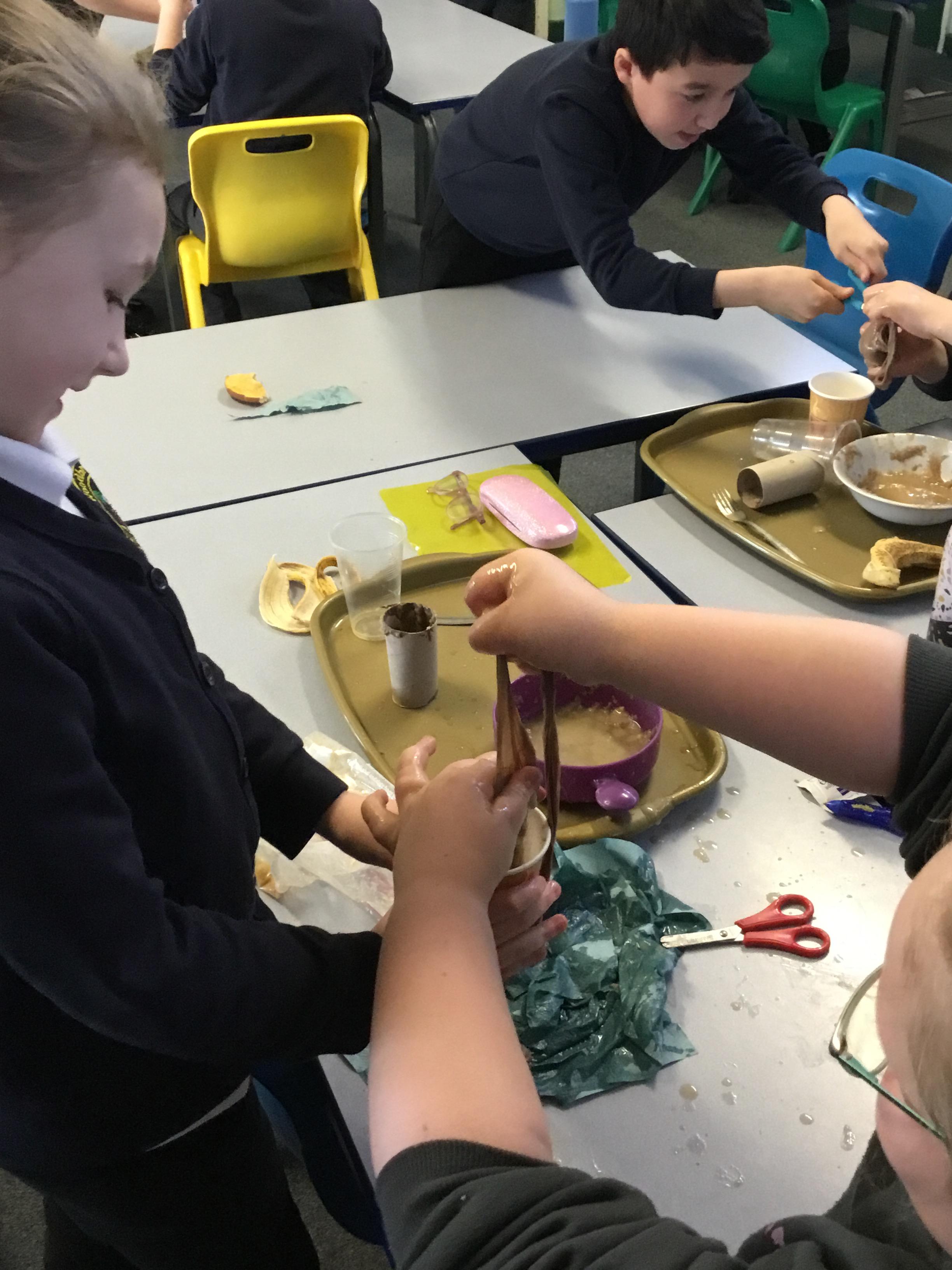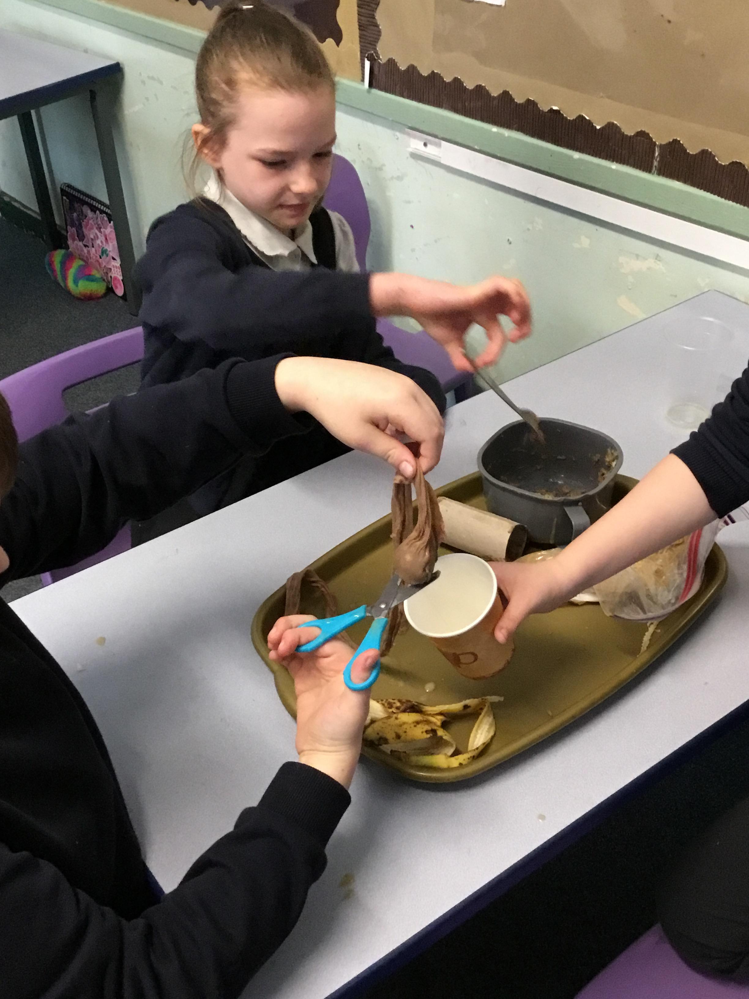 In Science, we have been learning all about the amazing digestive system. We have found out what happens to our food from the moment we eat it to the moment it exits our body at the the end of the process. Today we got practical and made our own version of the digestive system using bananas and wheatabix, with a little help from tights, tubes, bags and orange juice!