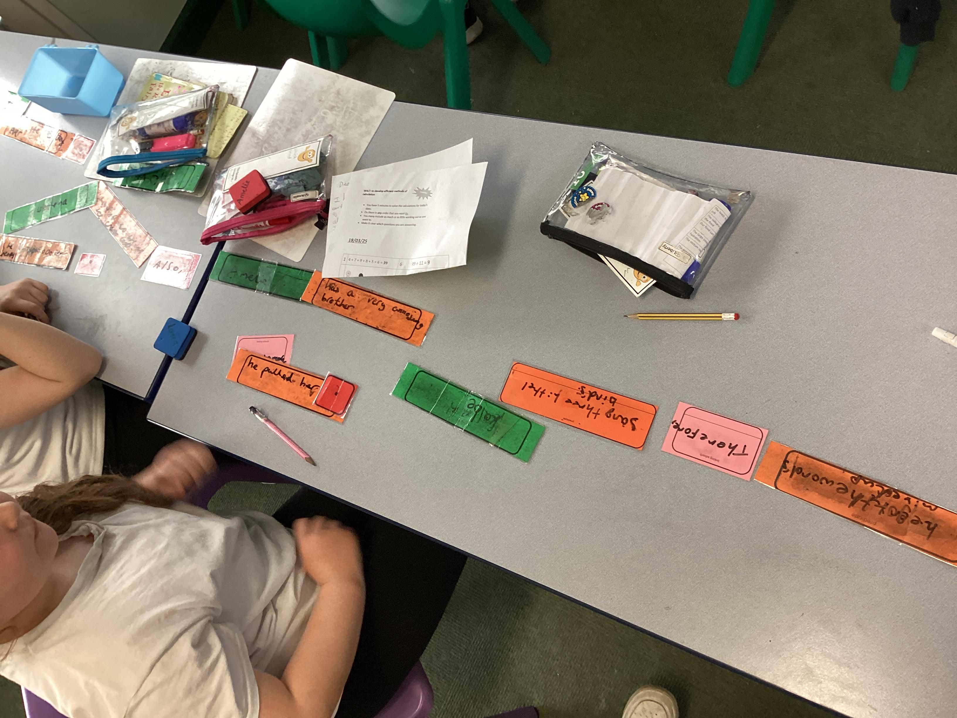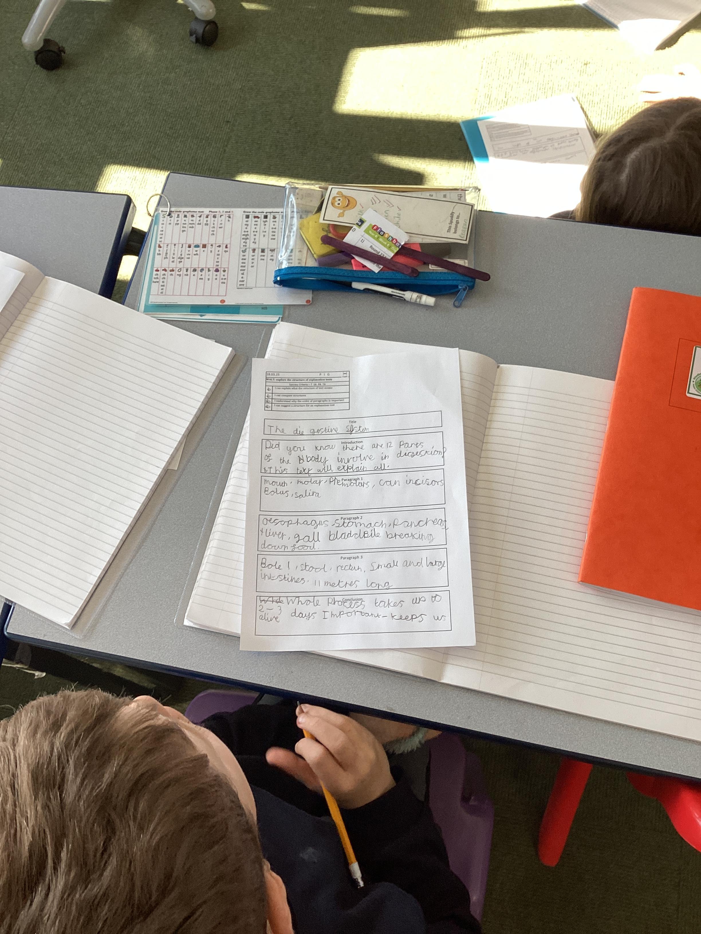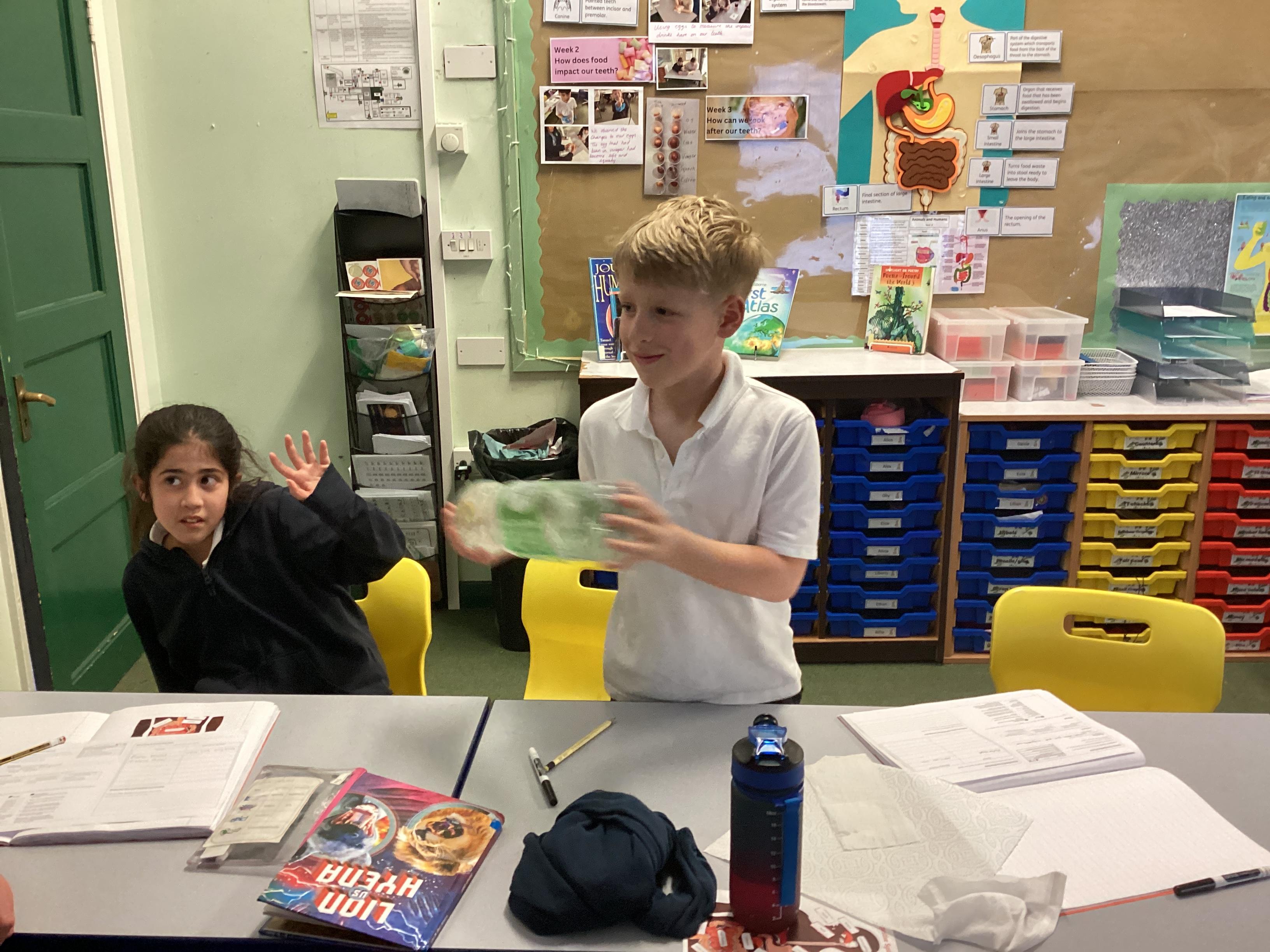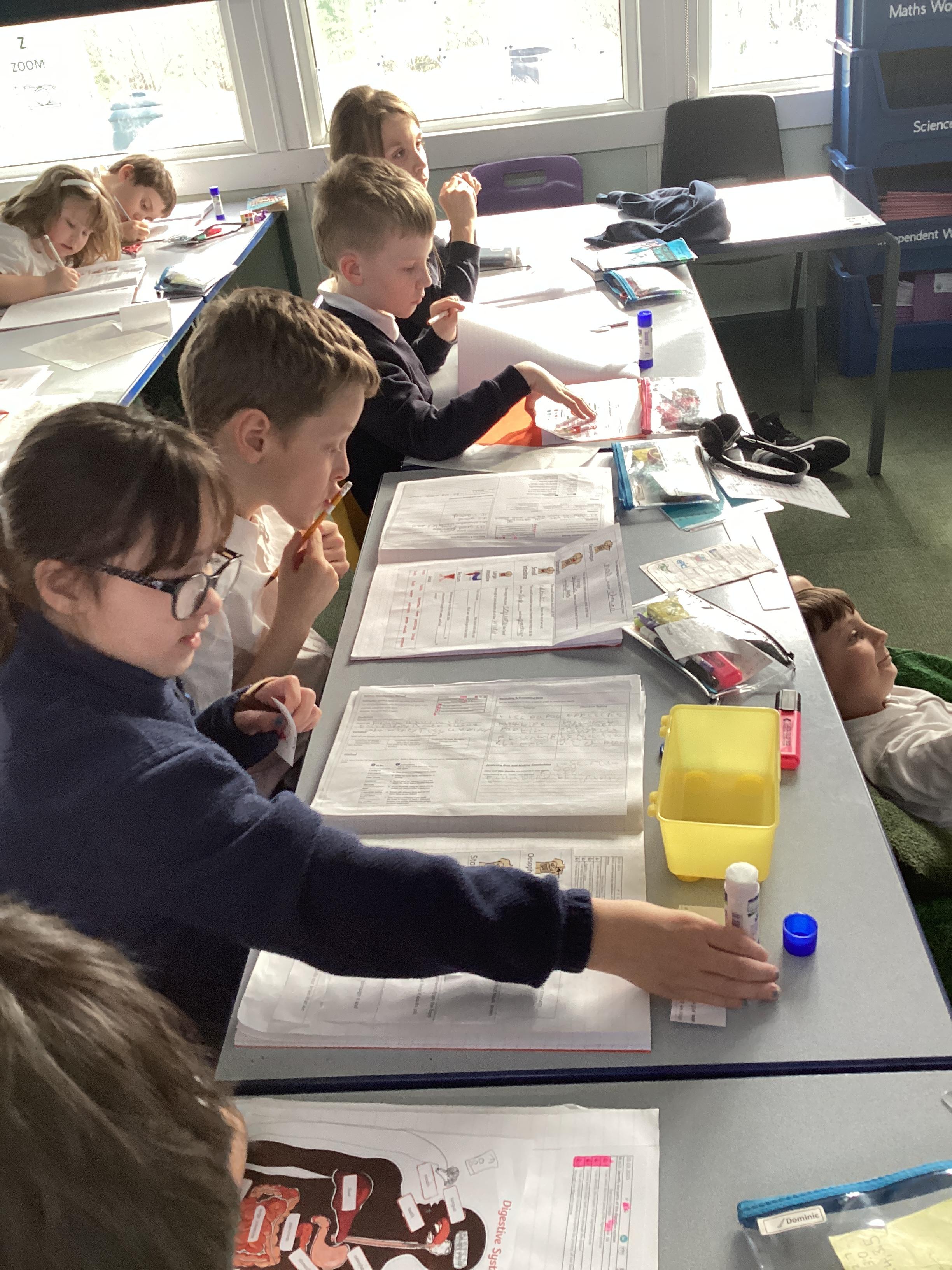 This week, in English, we have brought out our rainbow grammar cards to practice the use of linking adverbs to help us in our next independent right. In PE, we completed races on the wheelchair and I can really see that the children are becoming much more adapt to playing sports in the wheel chairs. In Science, we explored the complete journey of the digestive system and got really messy with the process, the children absolutely loved it. In design and technology, we began to make our final product, sewing the sides of our bags. We took our Math learning outside, getting active whilst learning really helps the brain to remember those facts.