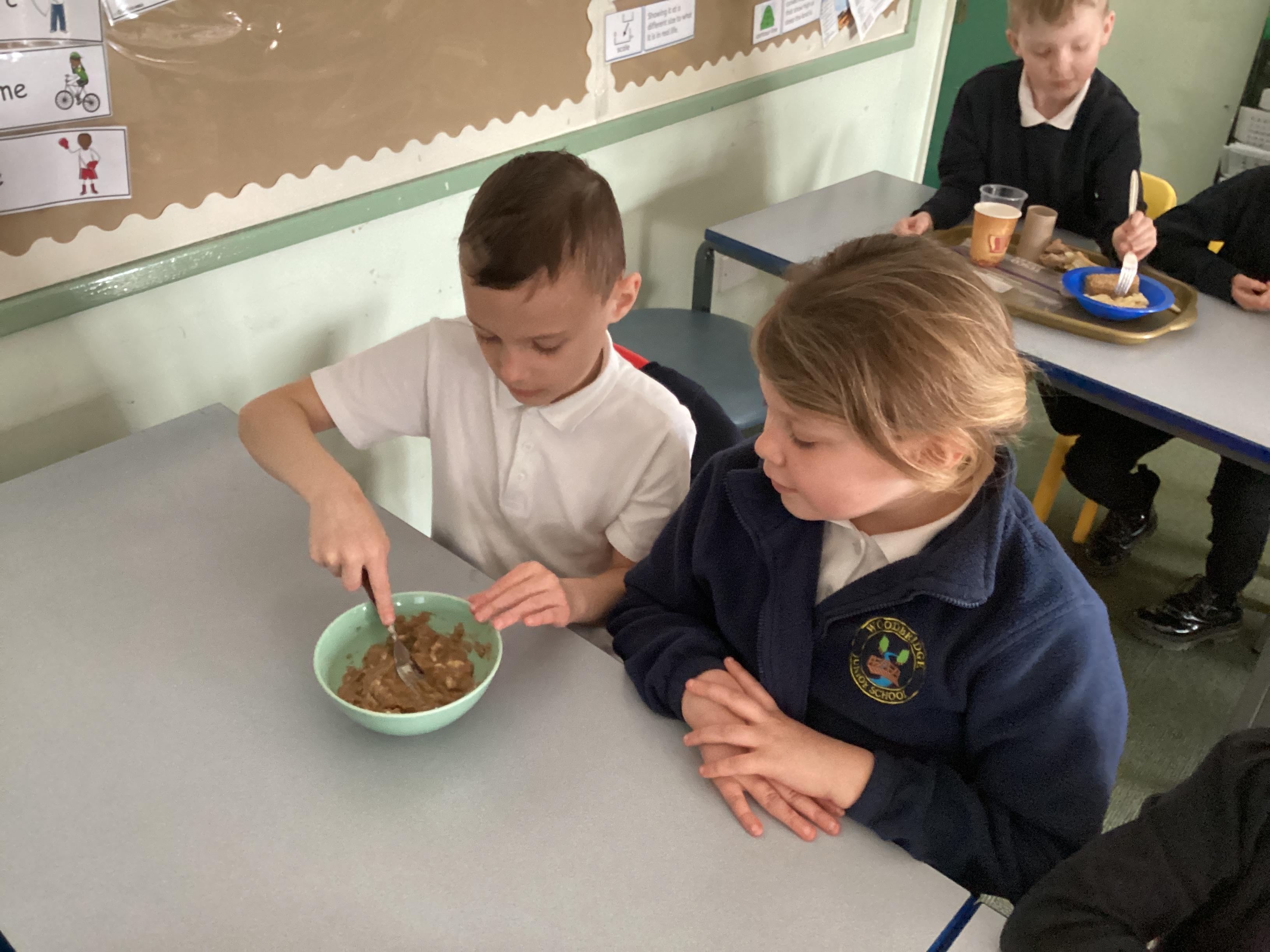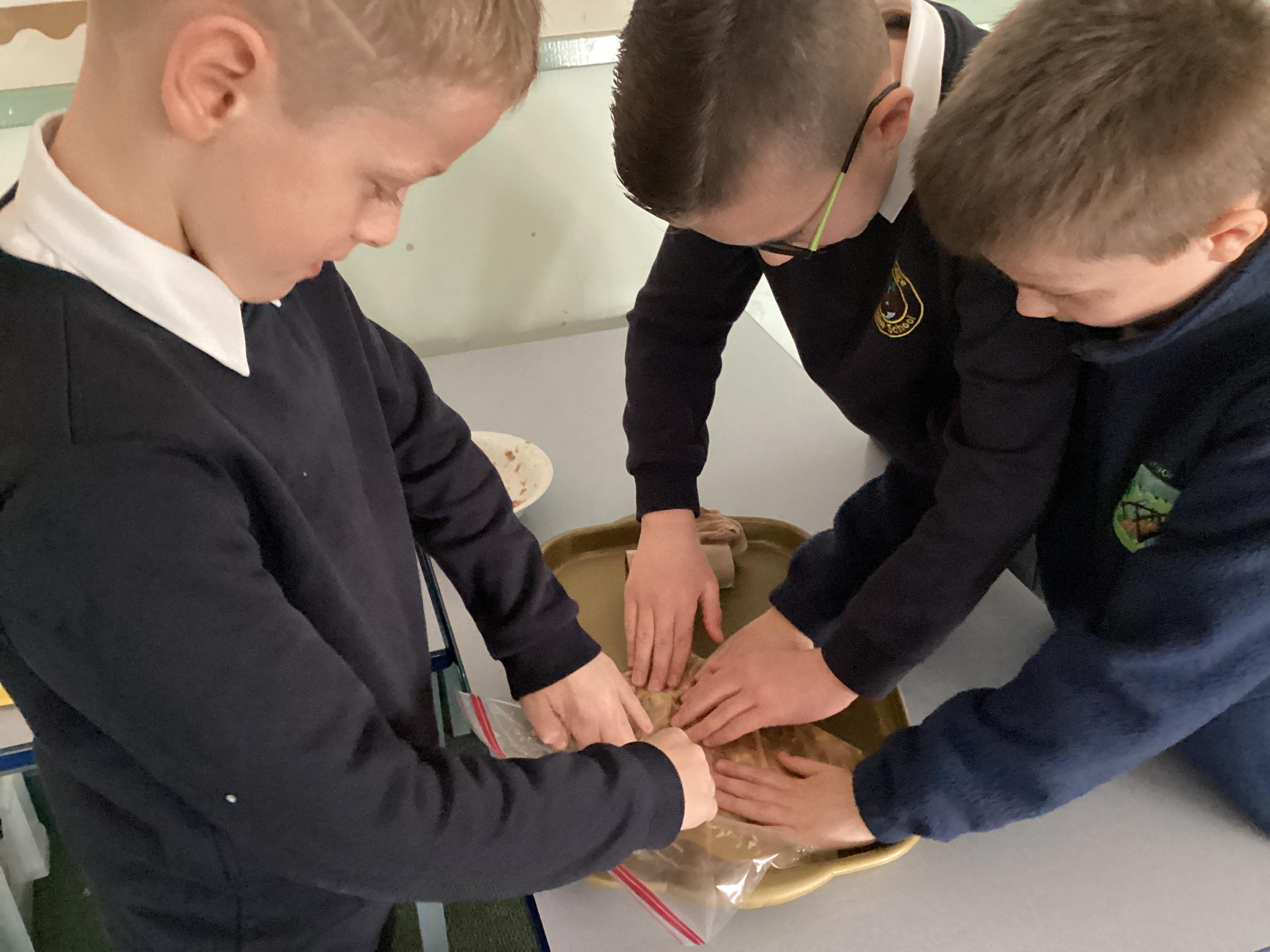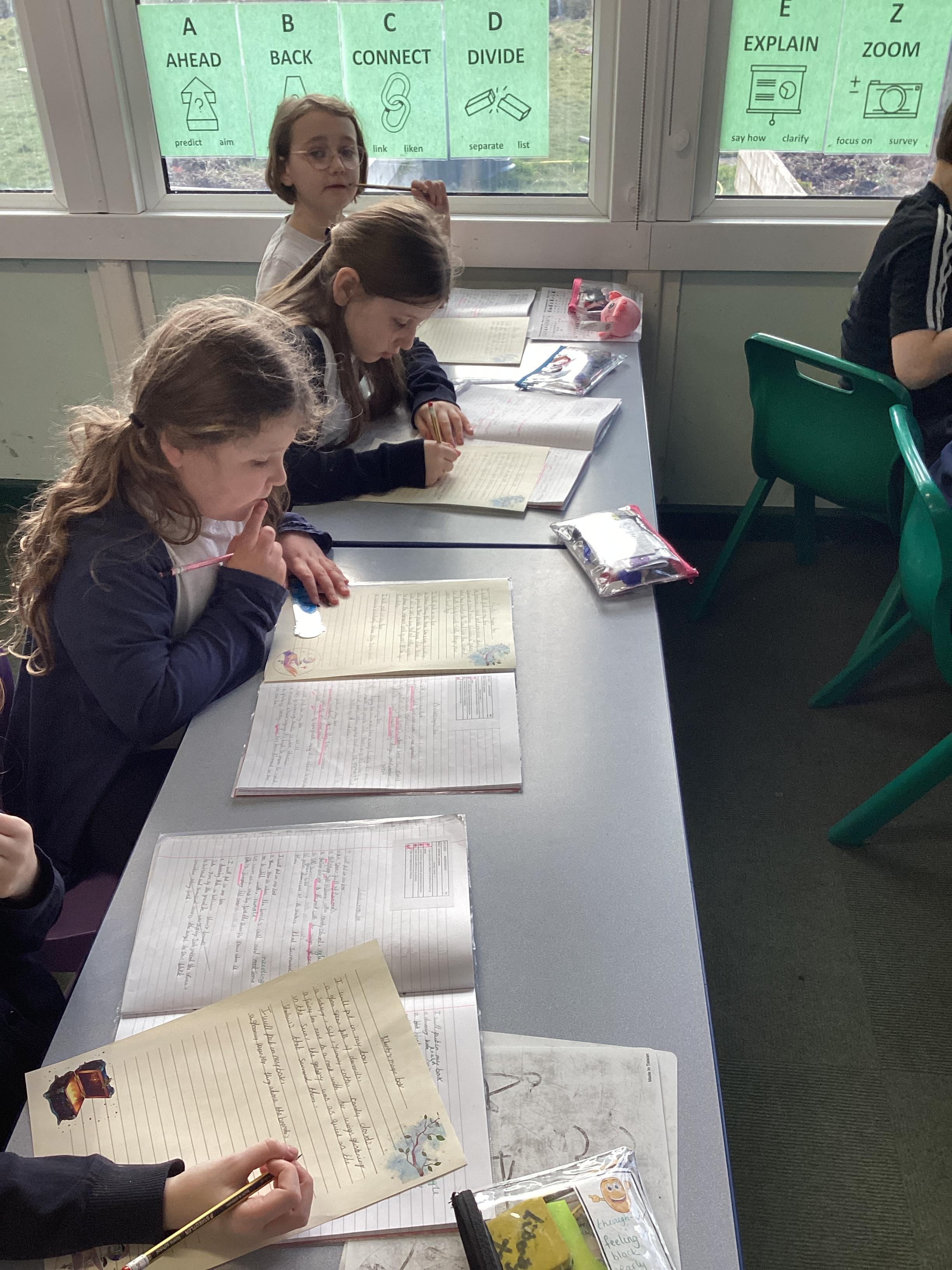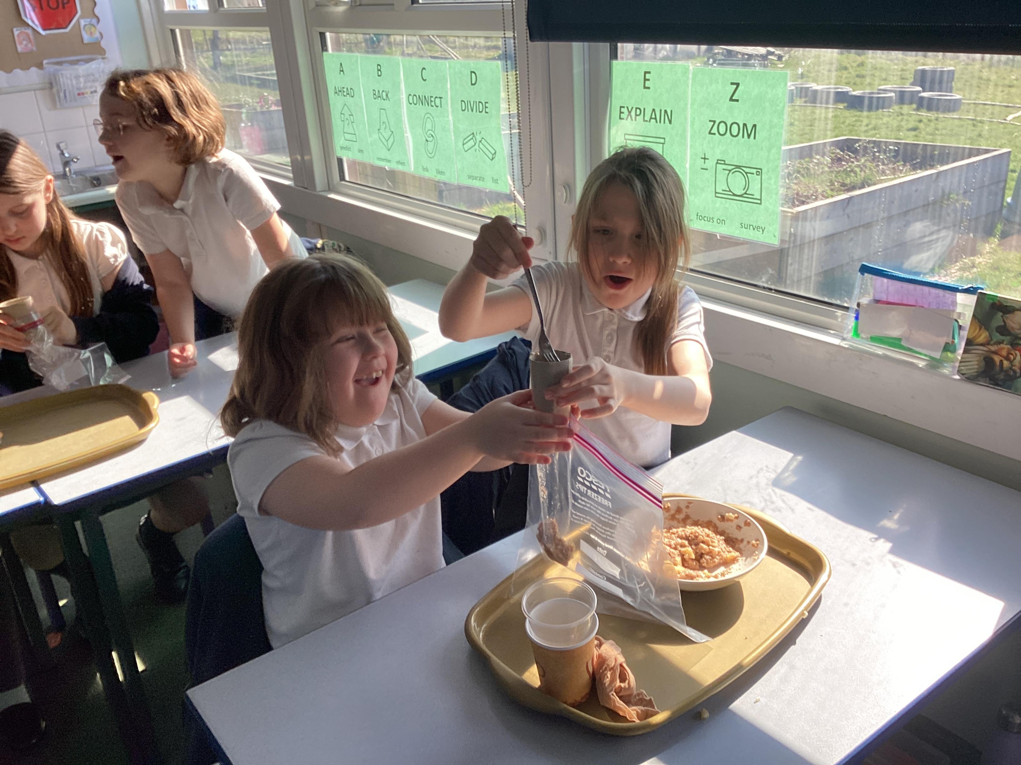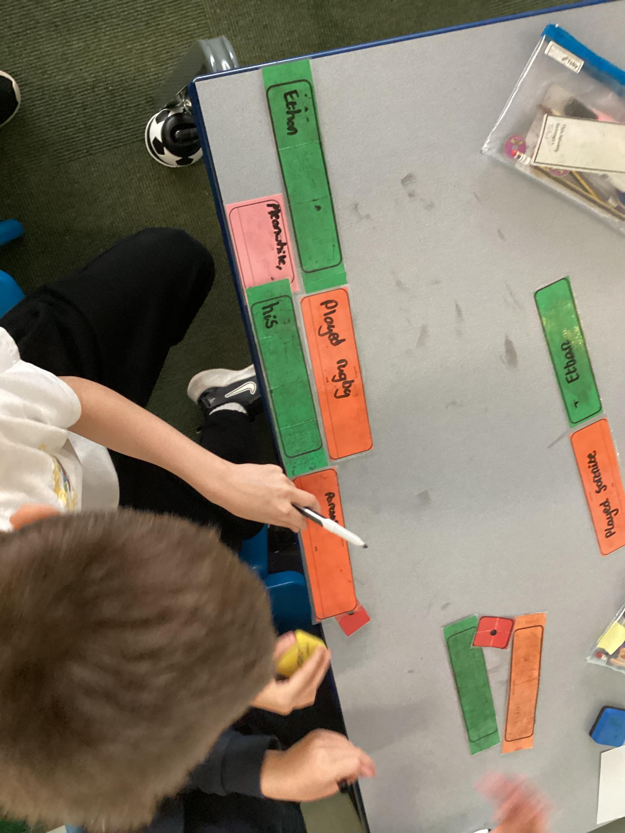 This week, in English, we have brought out our rainbow grammar cards to practice the use of linking adverbs to help us in our next independent right. In PE, we completed races on the wheelchair and I can really see that the children are becoming much more adapt to playing sports in the wheel chairs. In Science, we explored the complete journey of the digestive system and got really messy with the process, the children absolutely loved it. In design and technology, we began to make our final product, sewing the sides of our bags. We took our Math learning outside, getting active whilst learning really helps the brain to remember those facts.