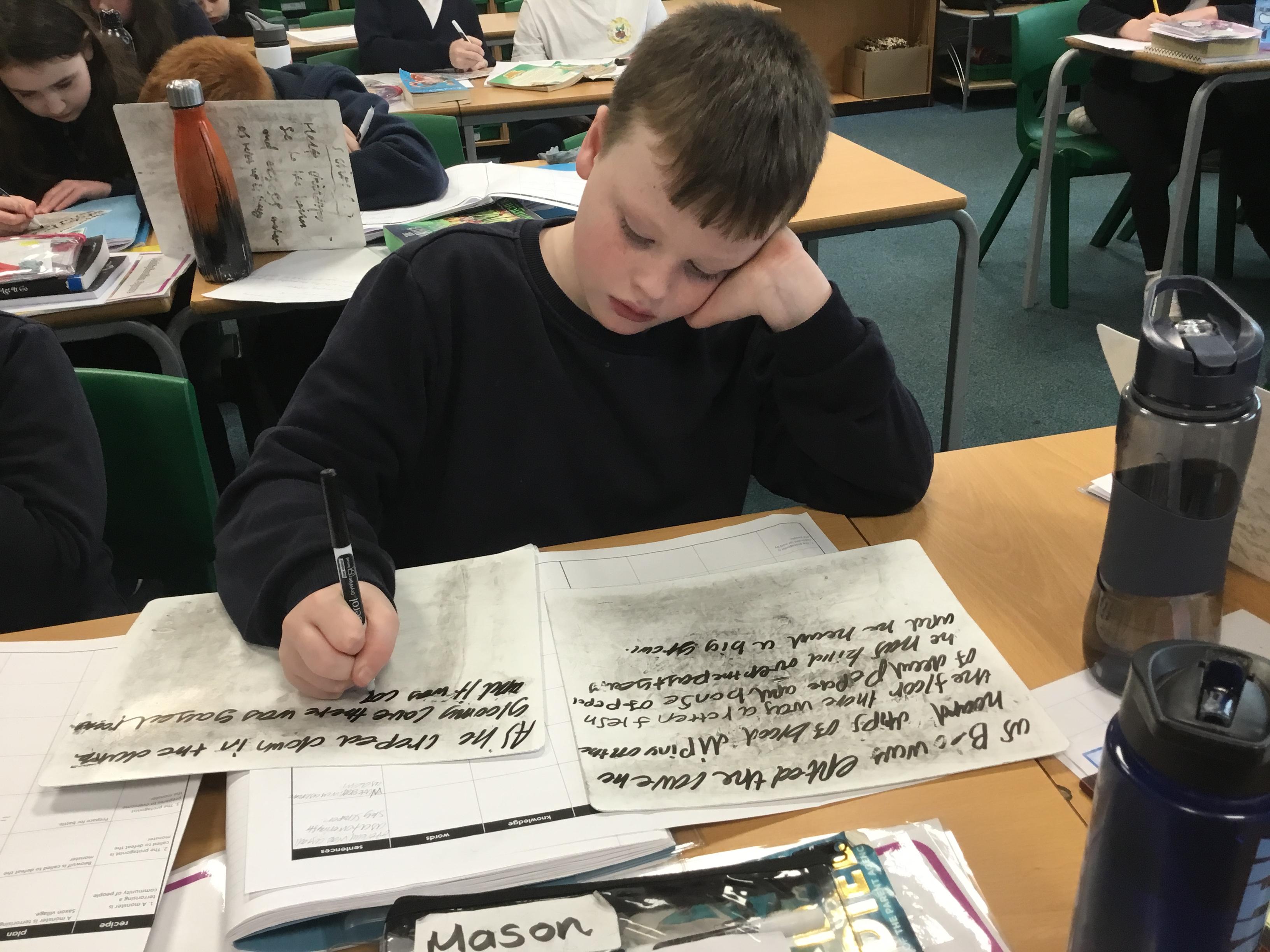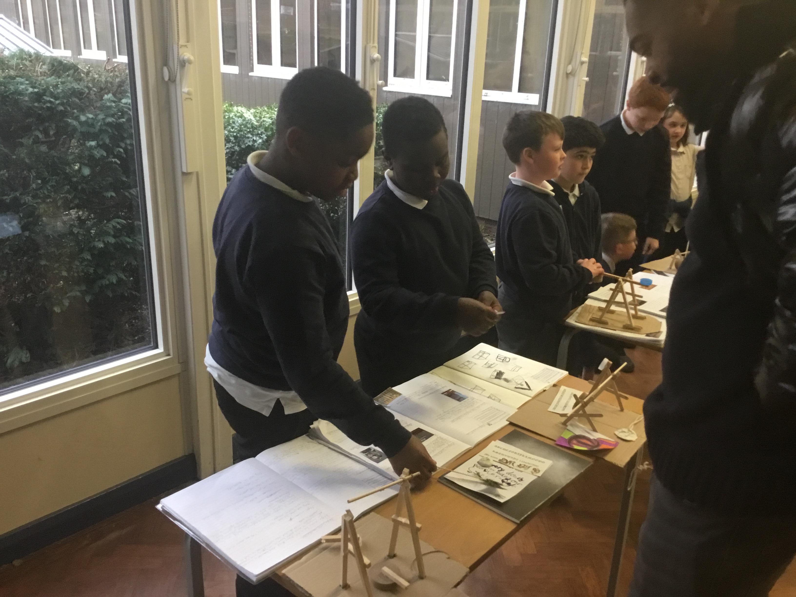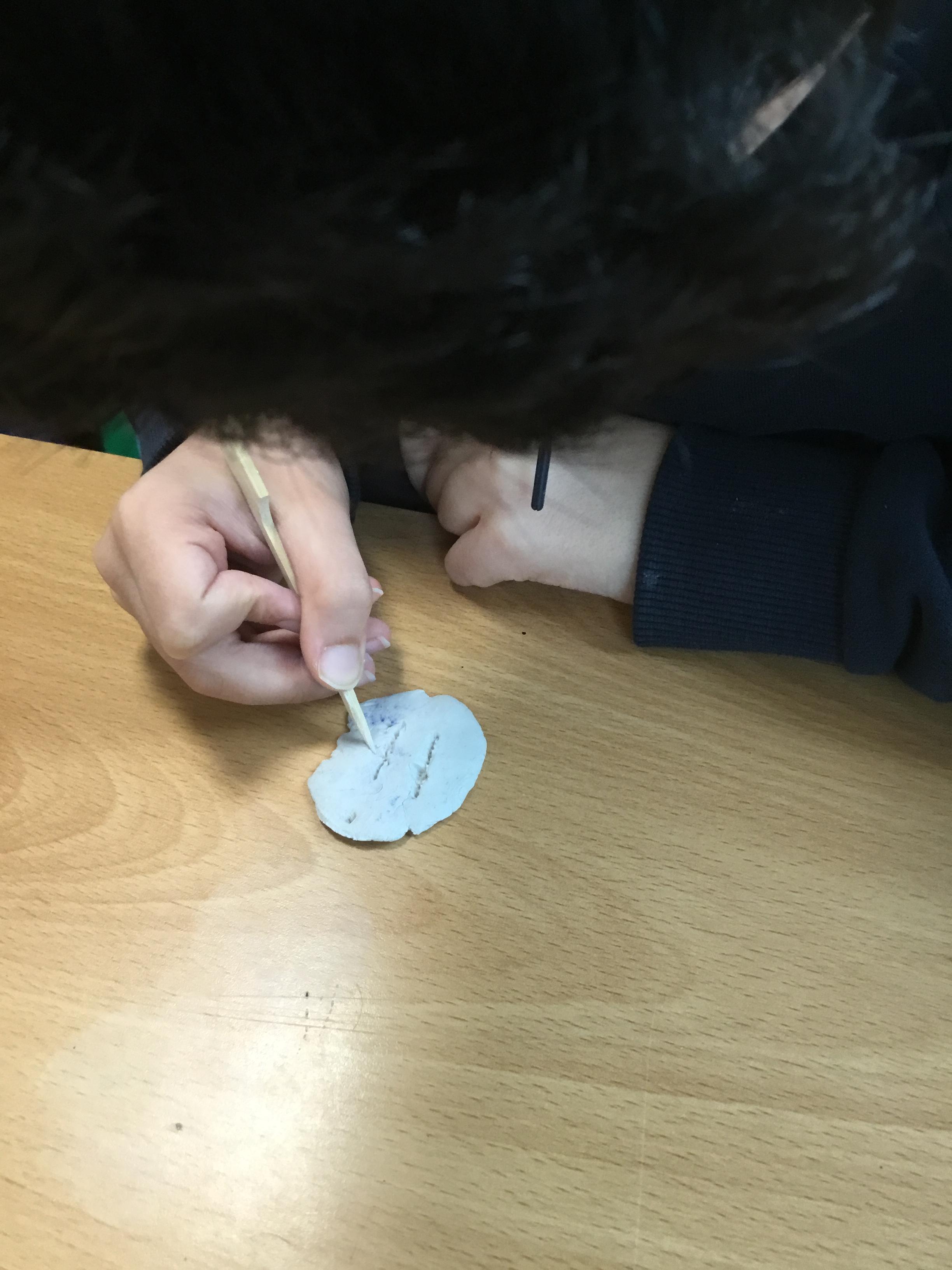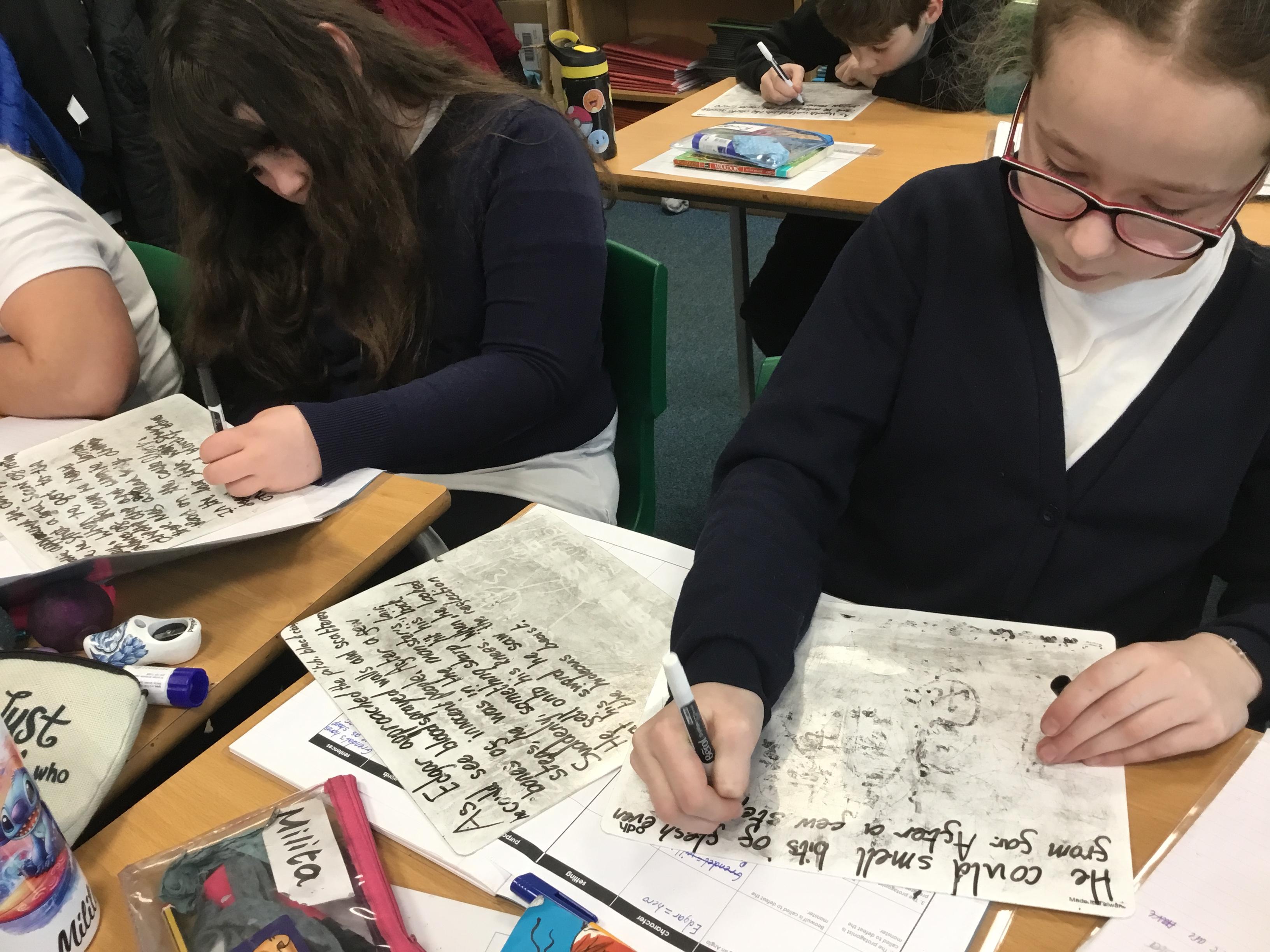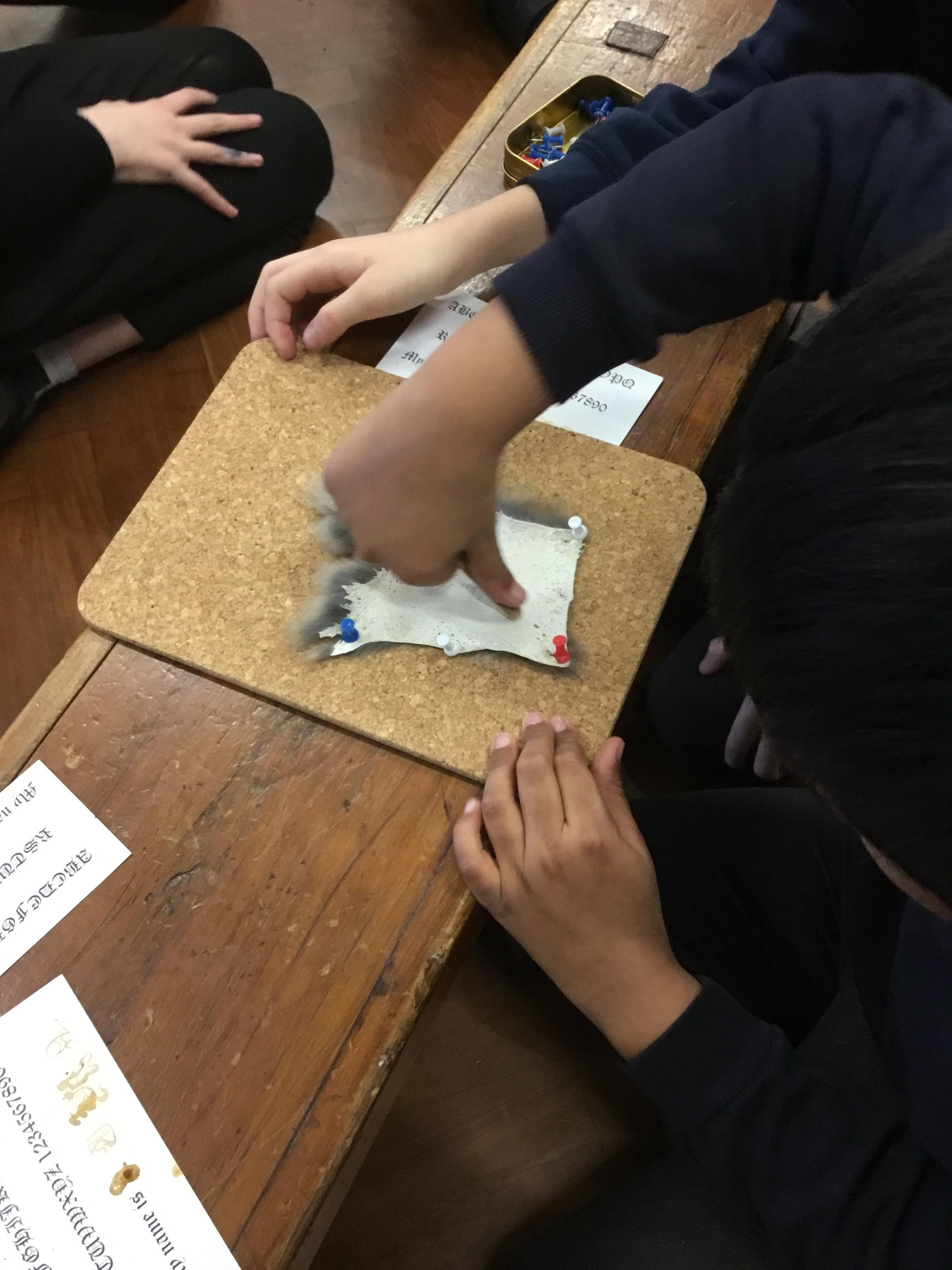 Art - using charcoal to draw our Anglo-Saxon 3D homes
