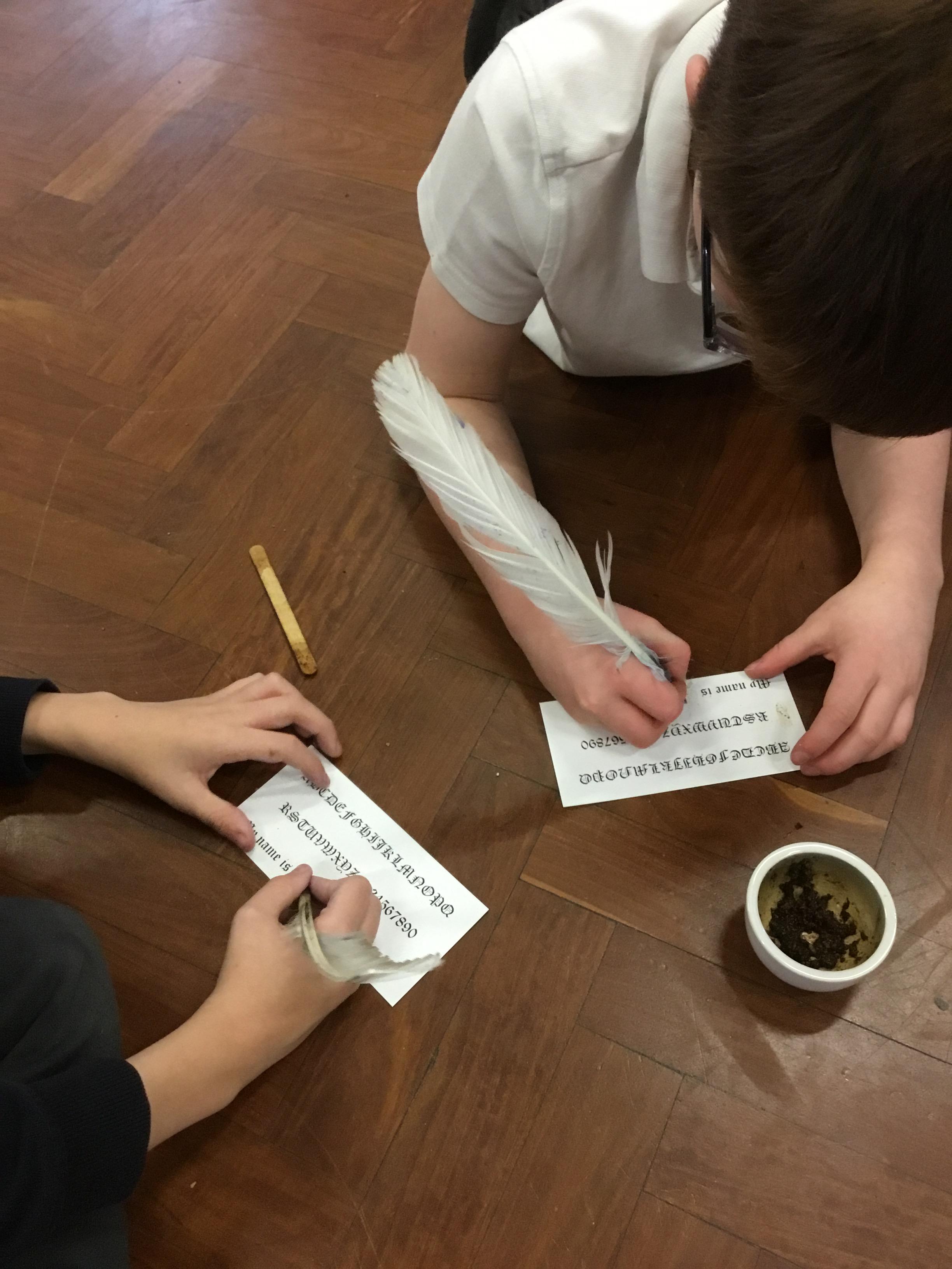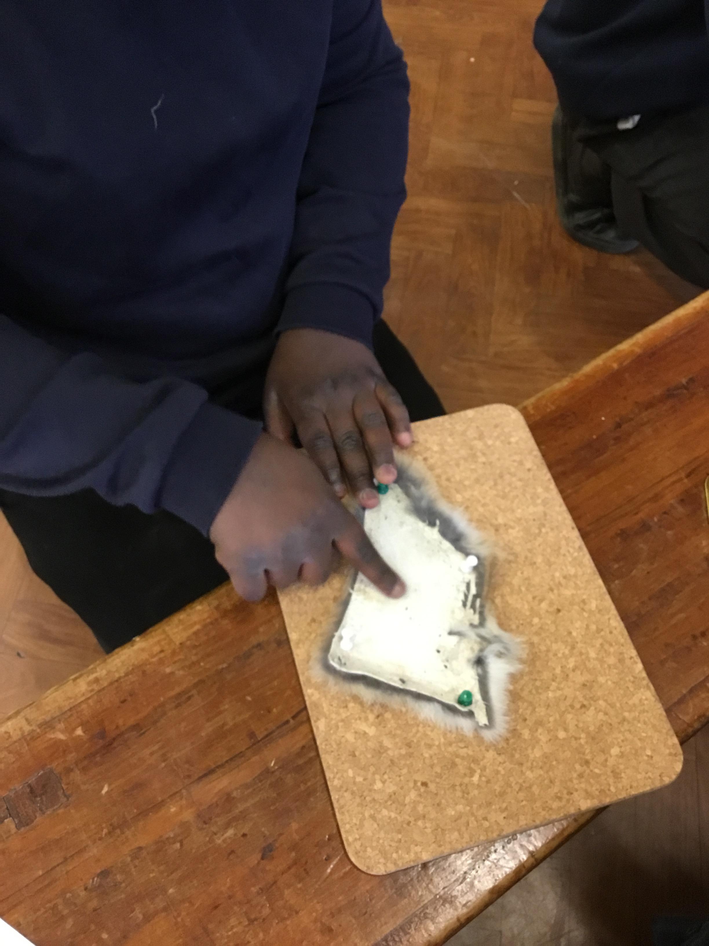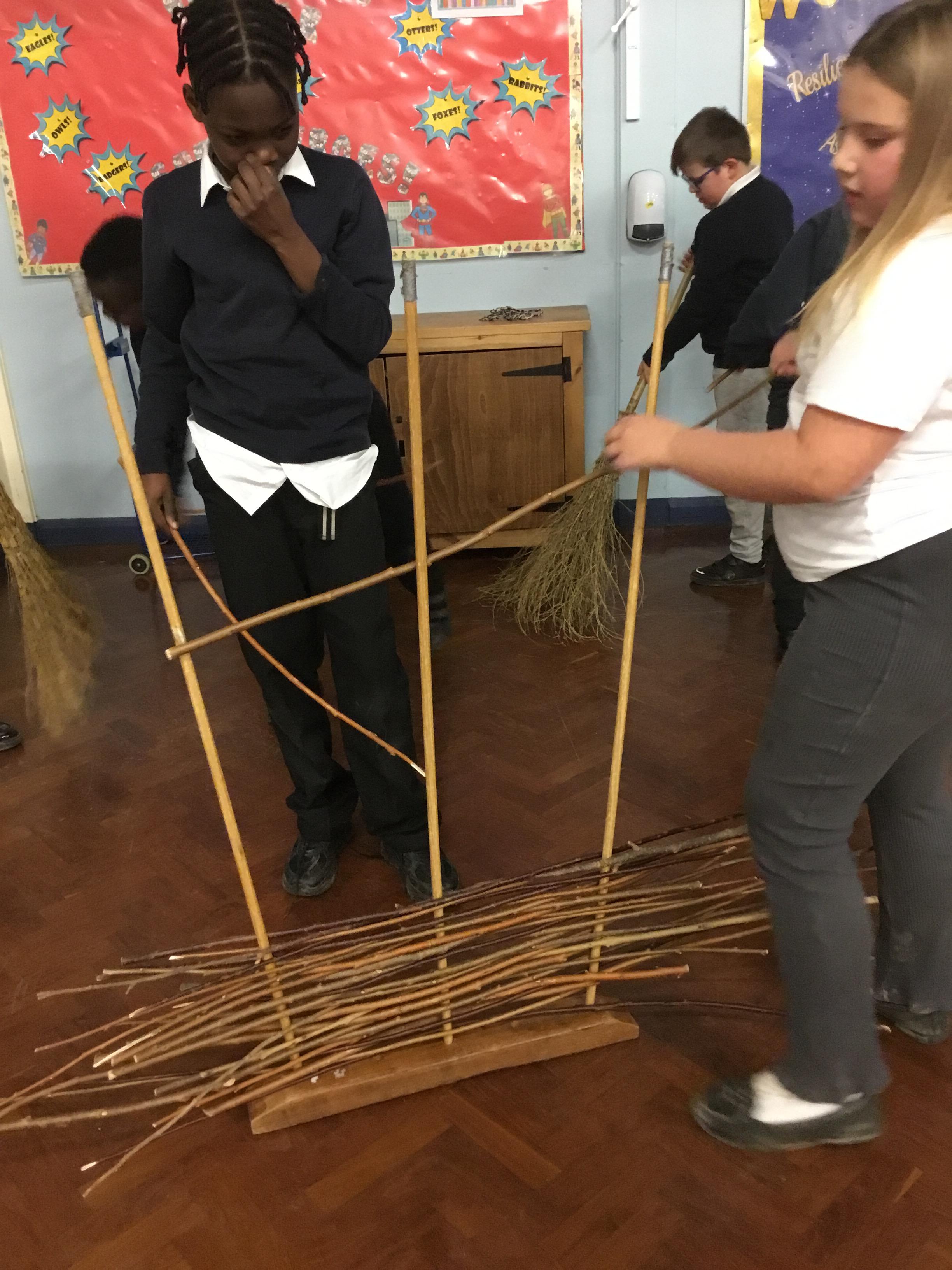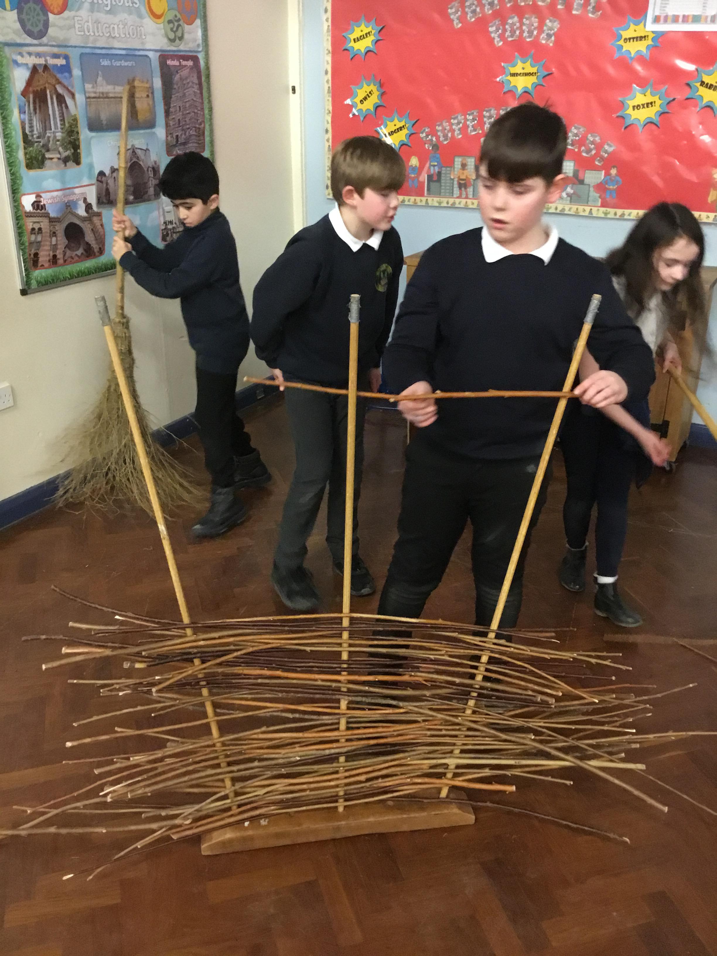 Art - using charcoal to draw our Anglo-Saxon 3D homes
