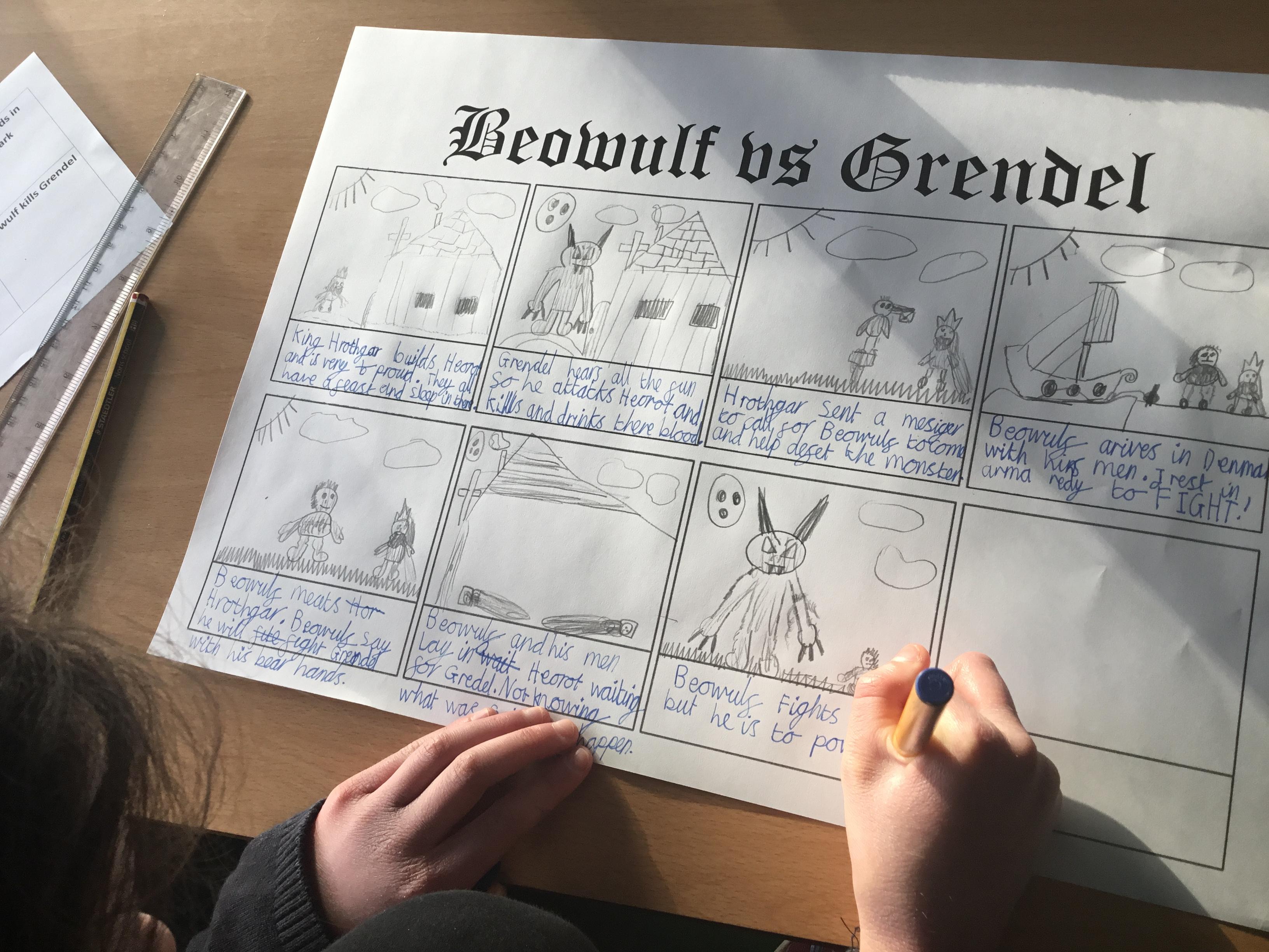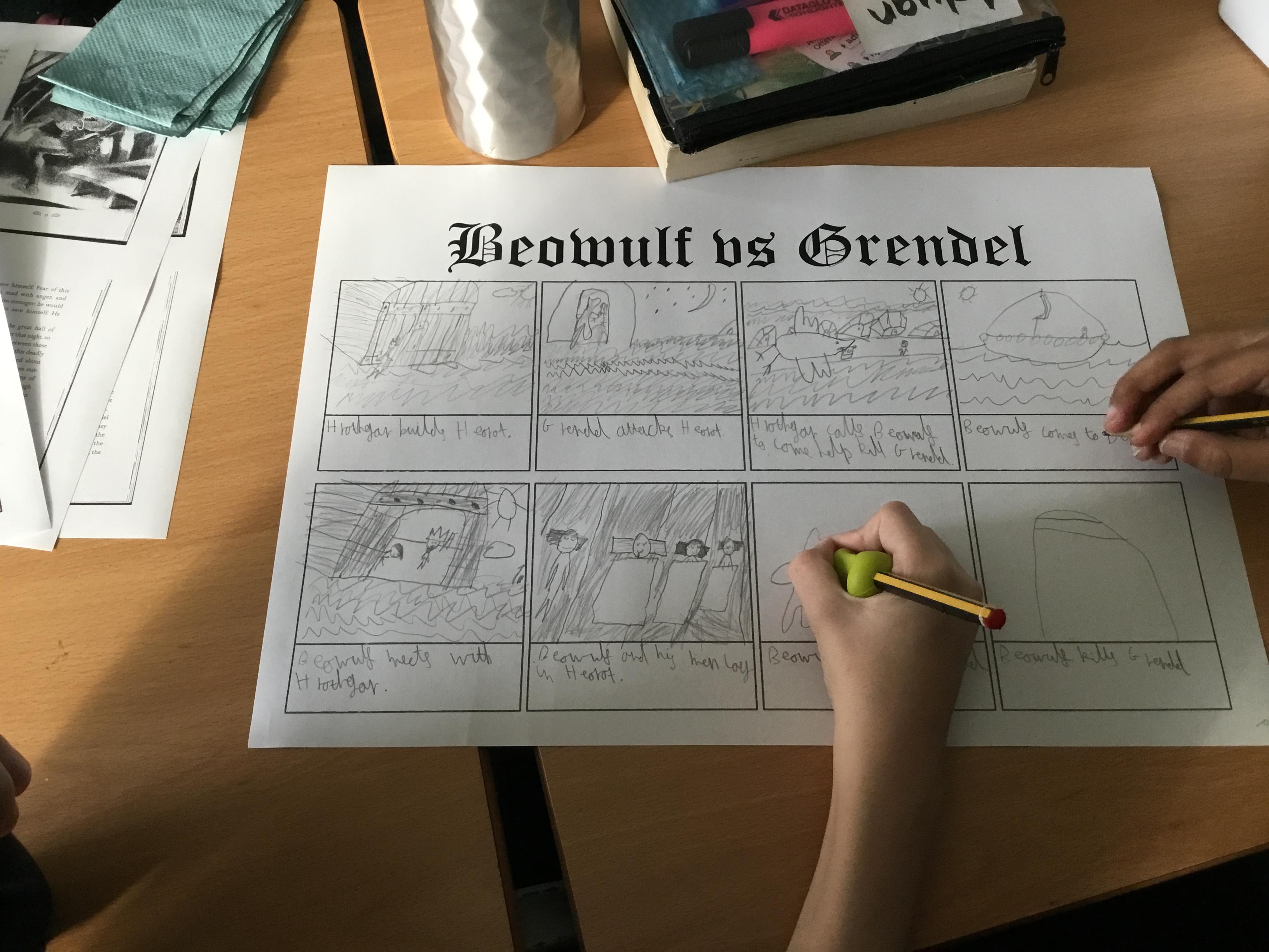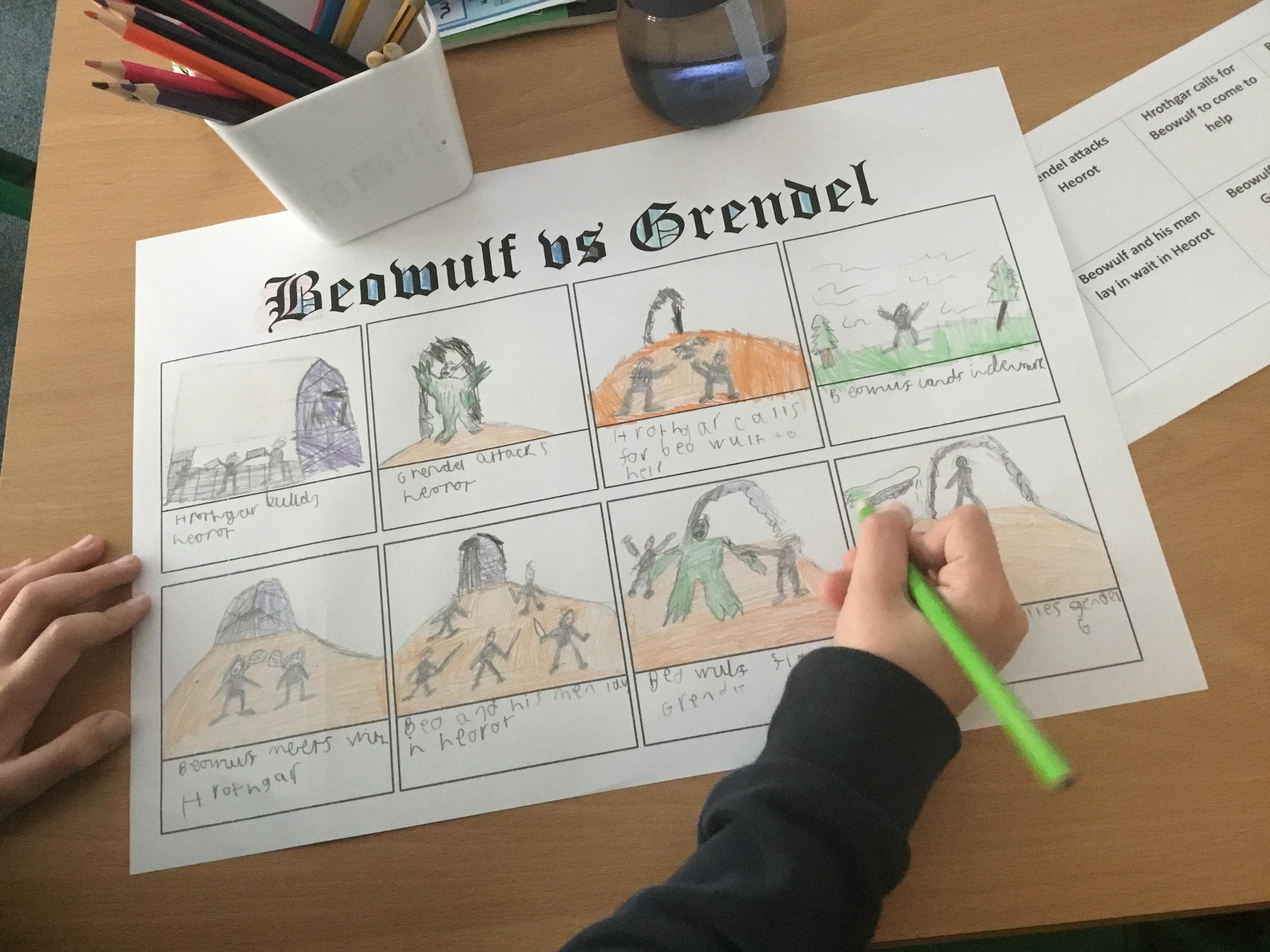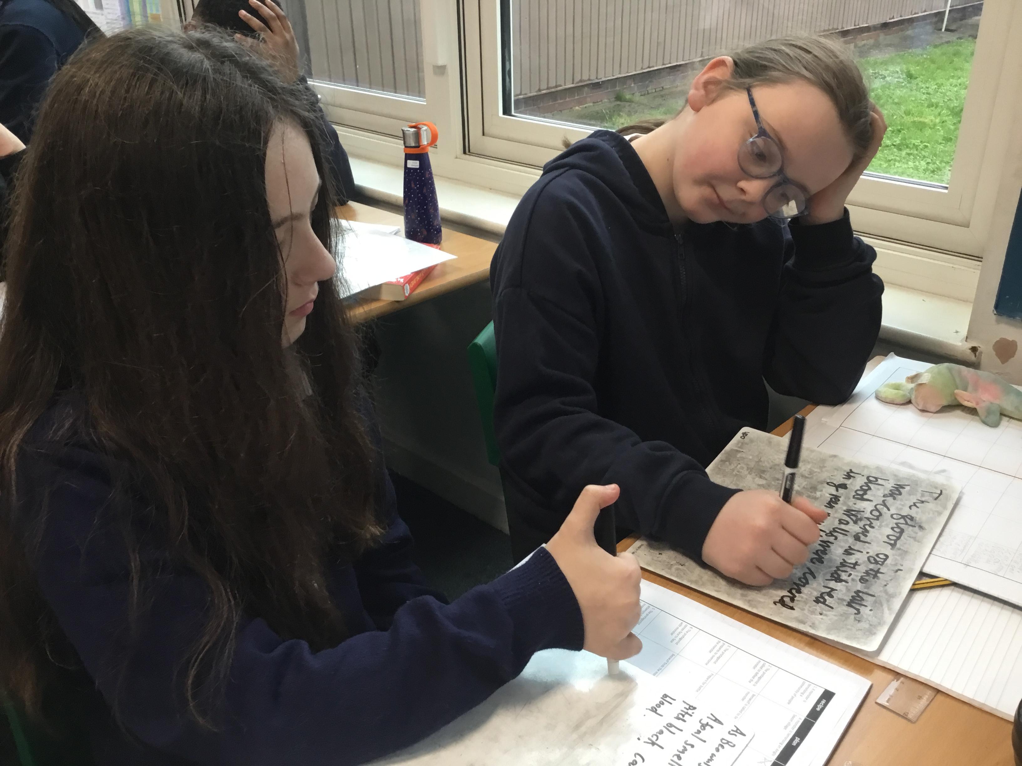 Art - using charcoal to draw our Anglo-Saxon 3D homes