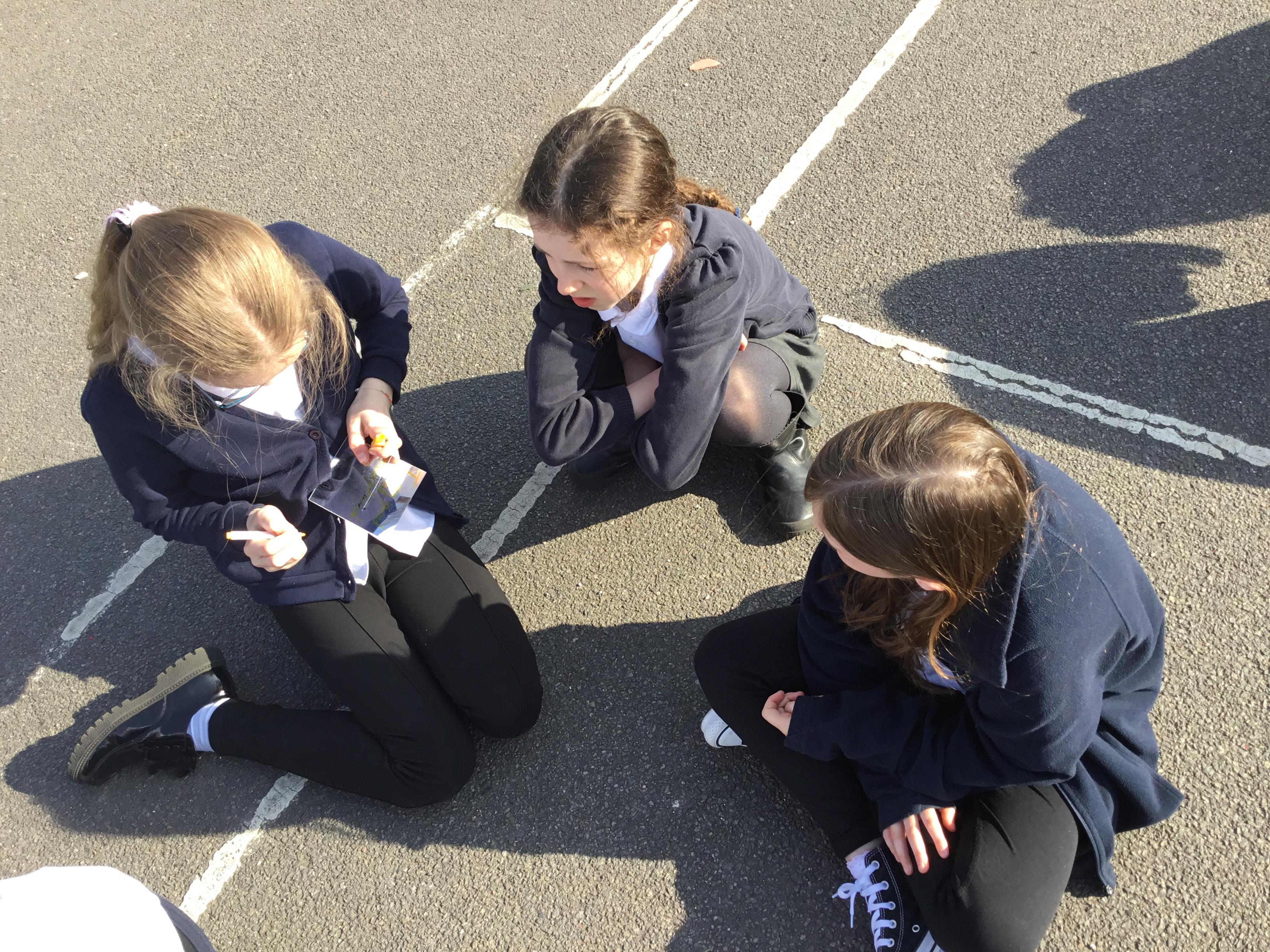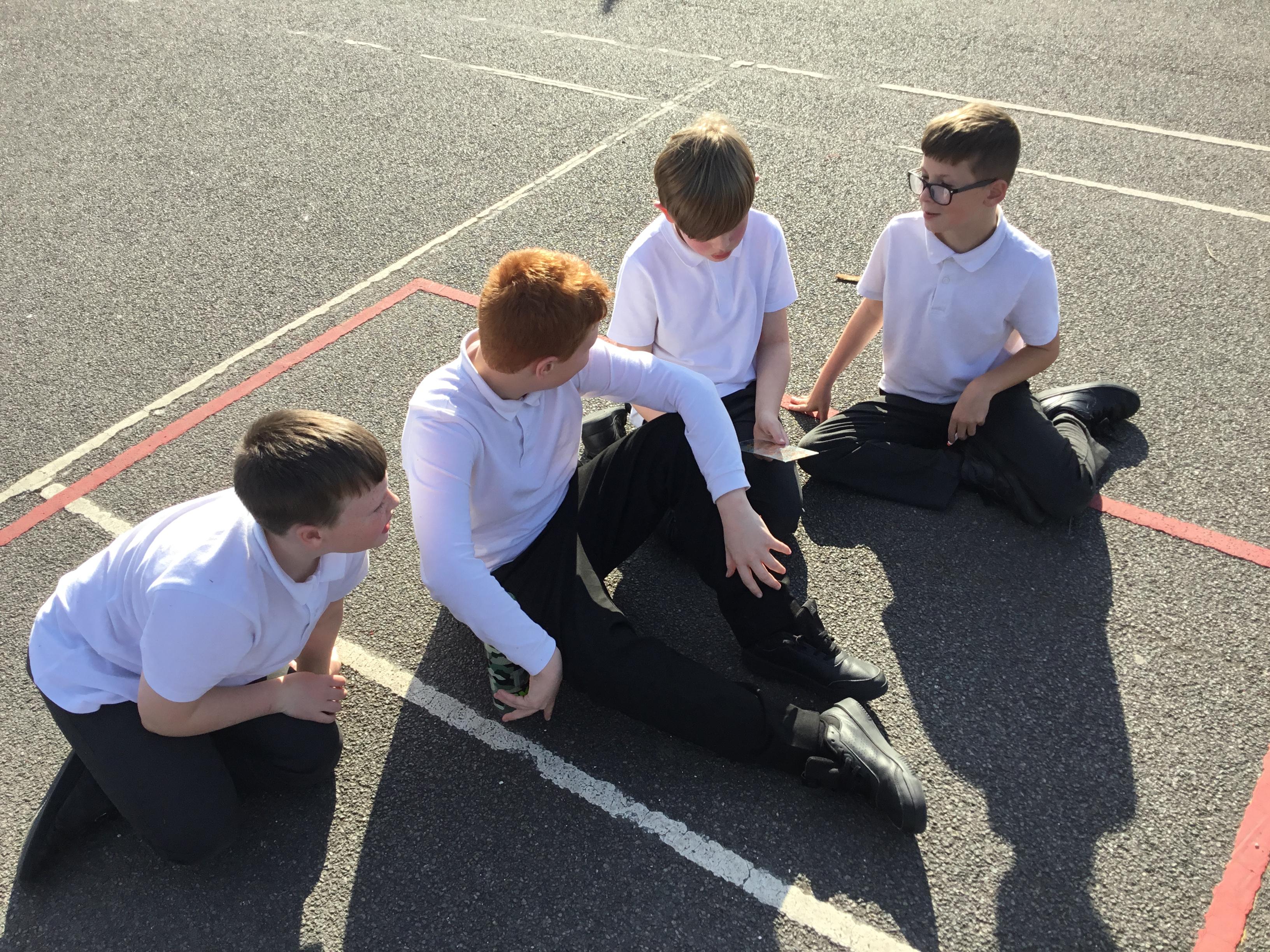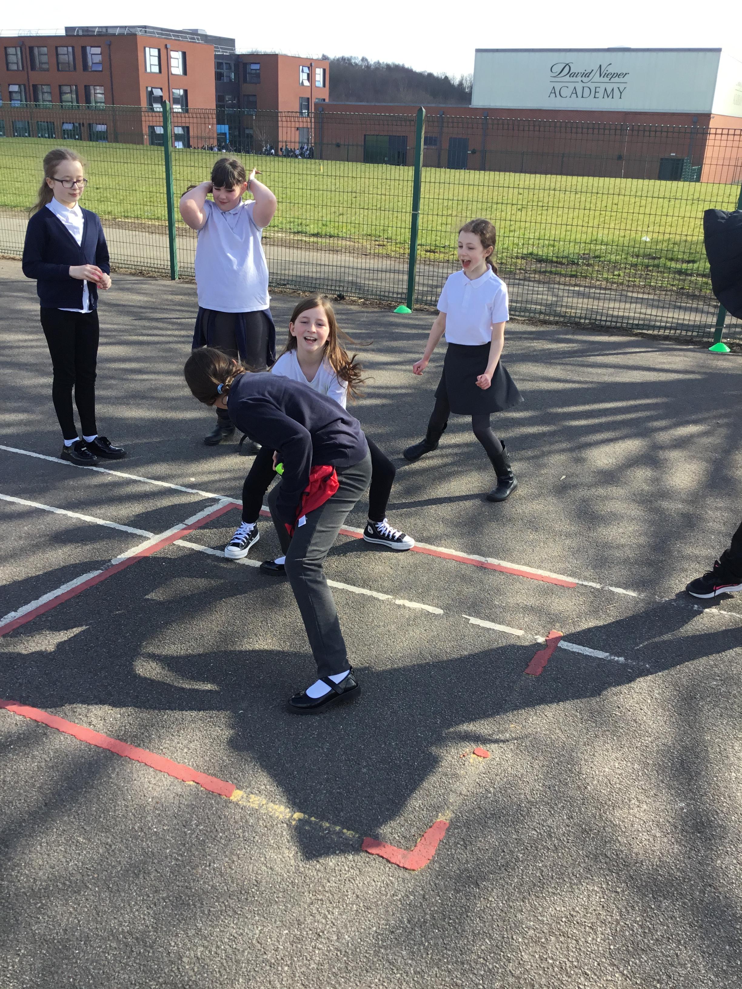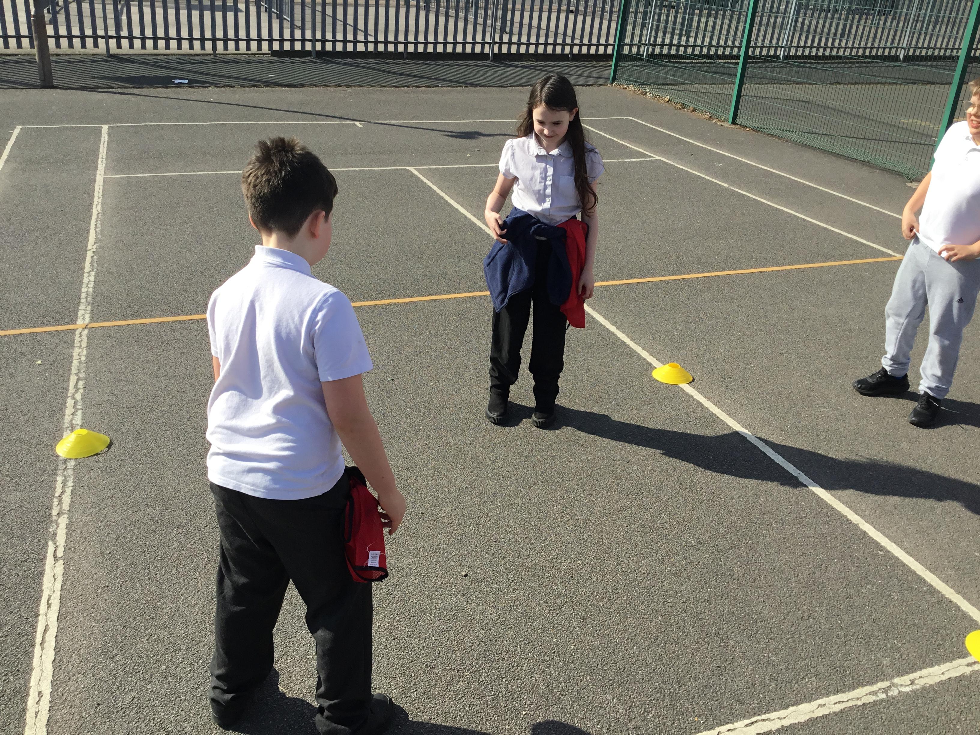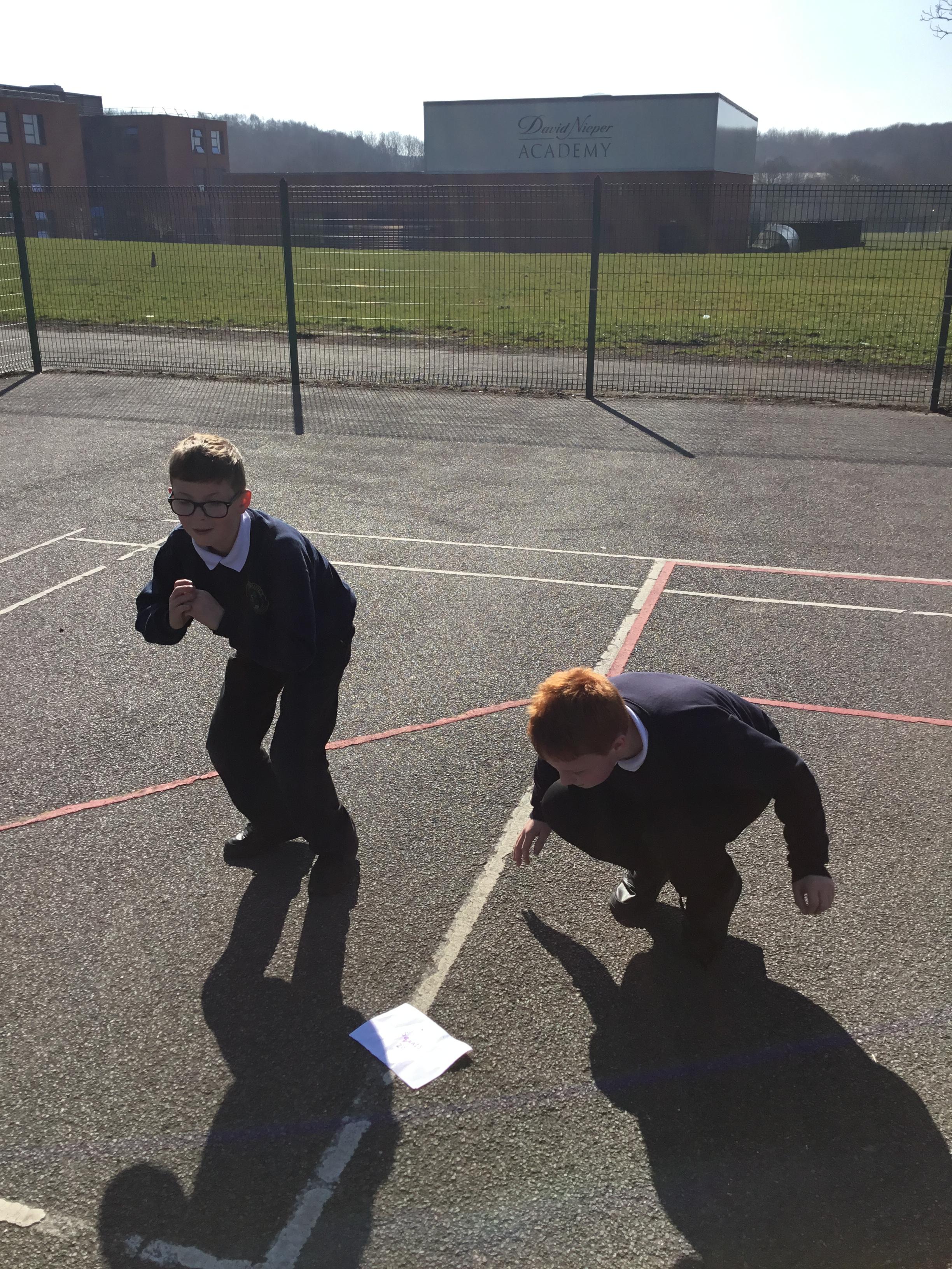 Practising our multiplication facts on our new multiplication boards outdoors