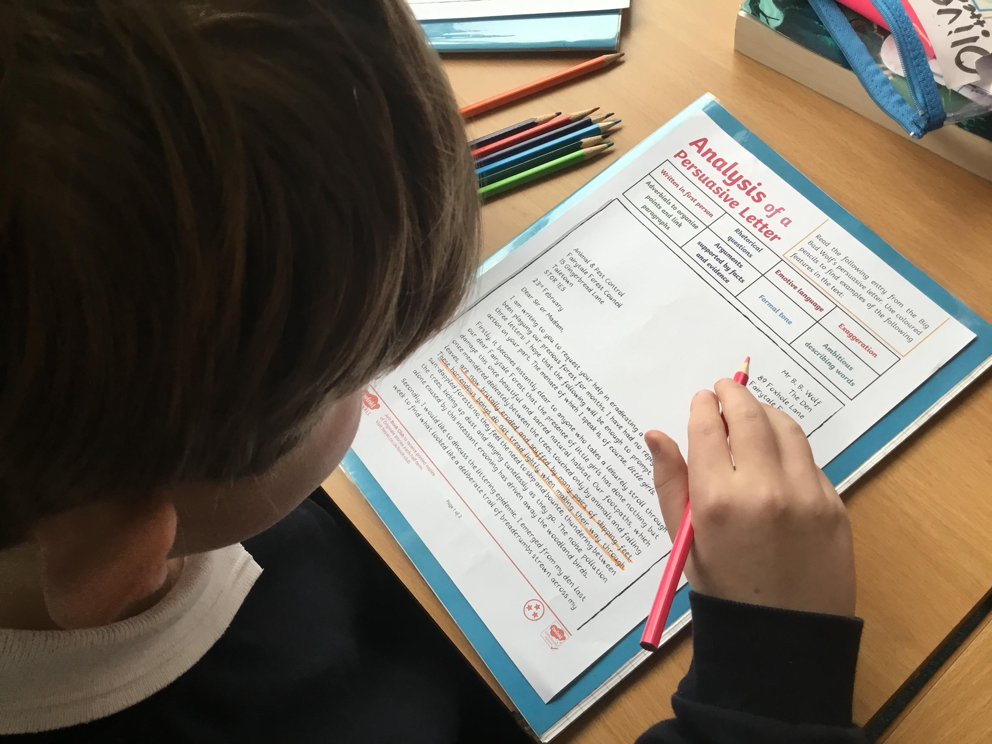 English - identifying features of a persuasive letter