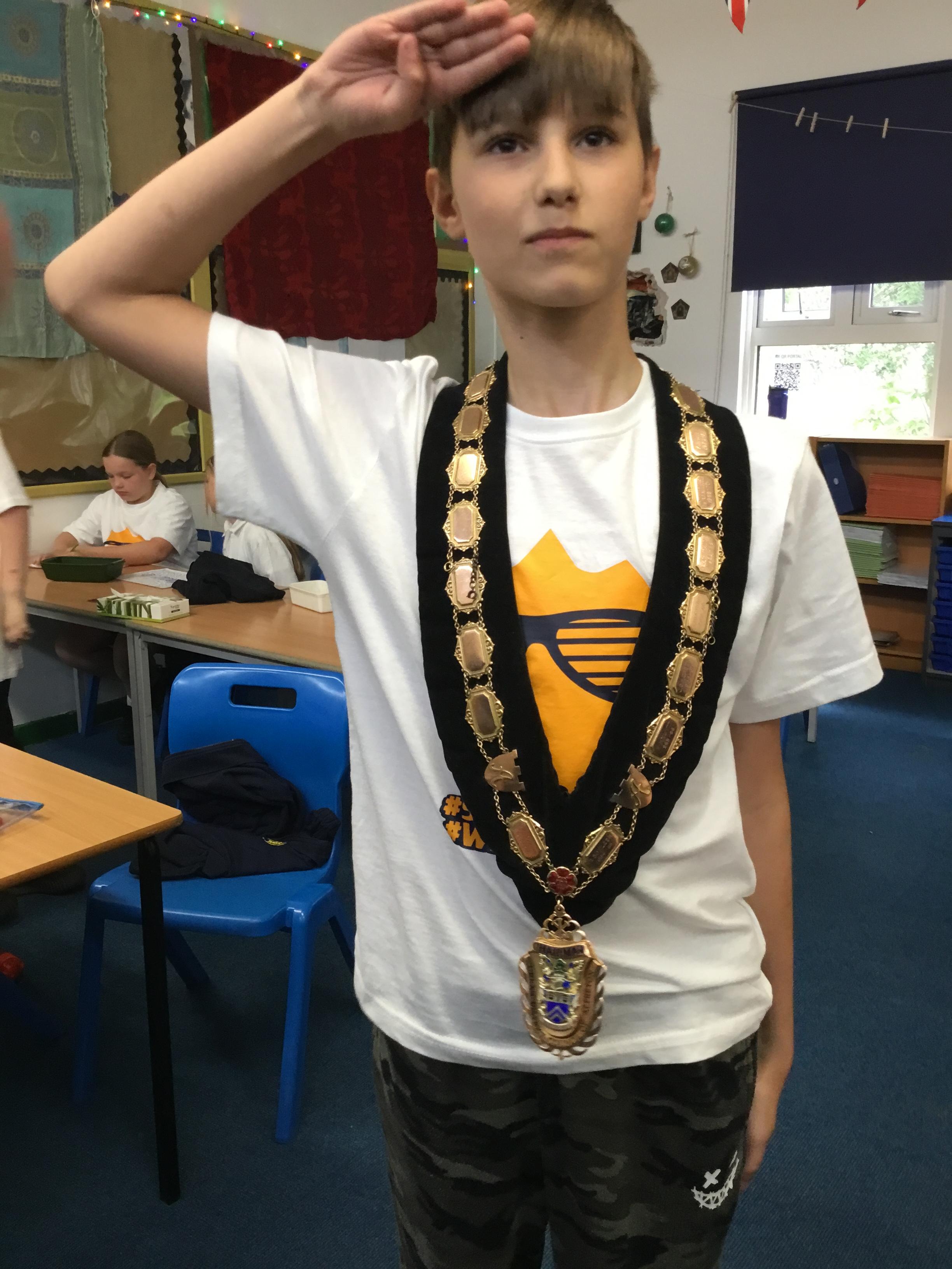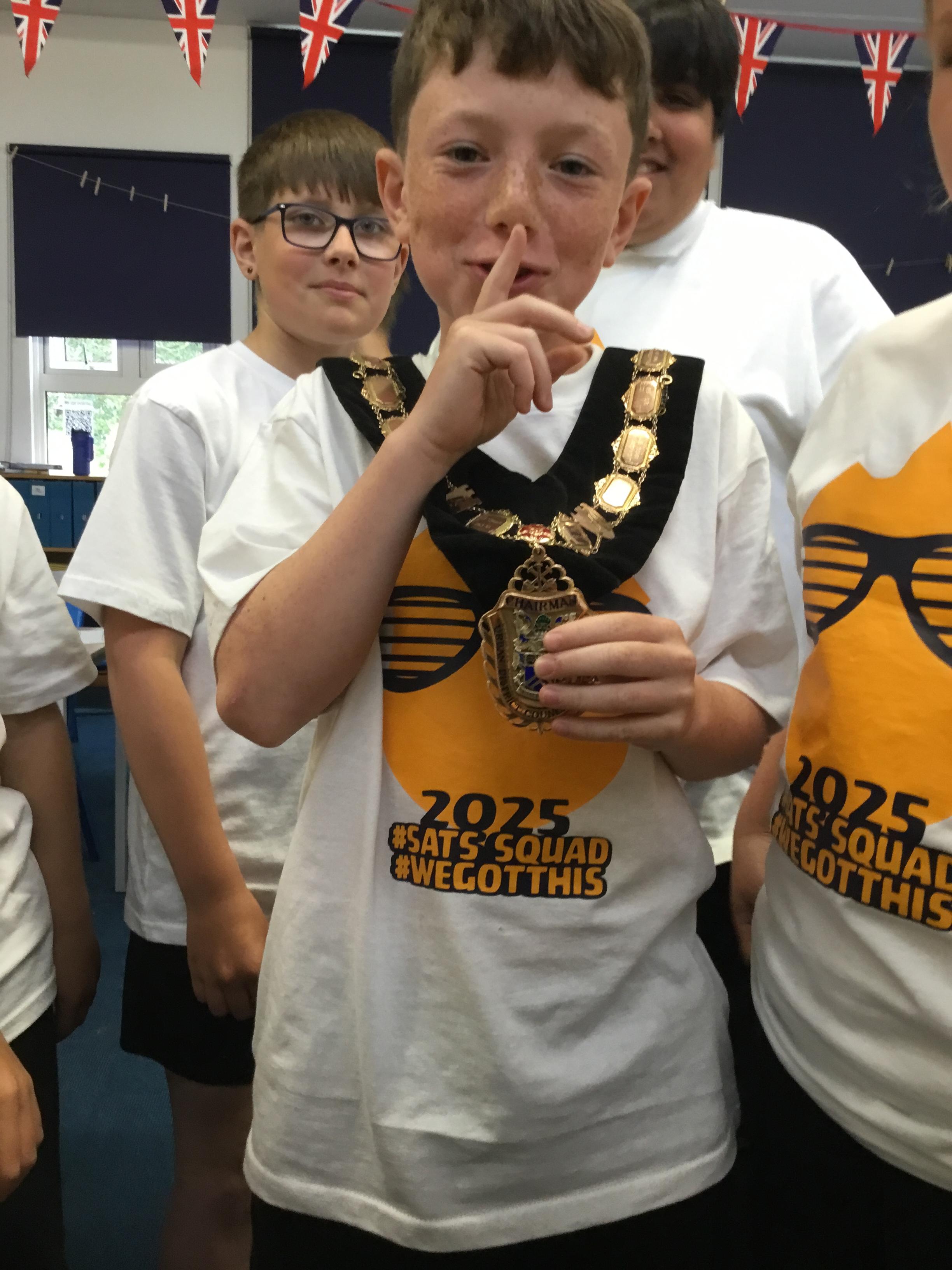 Thursday 15th May - The final day of SATs and Mayor Taylor brought in his 'chains of office' in for Owls to try.