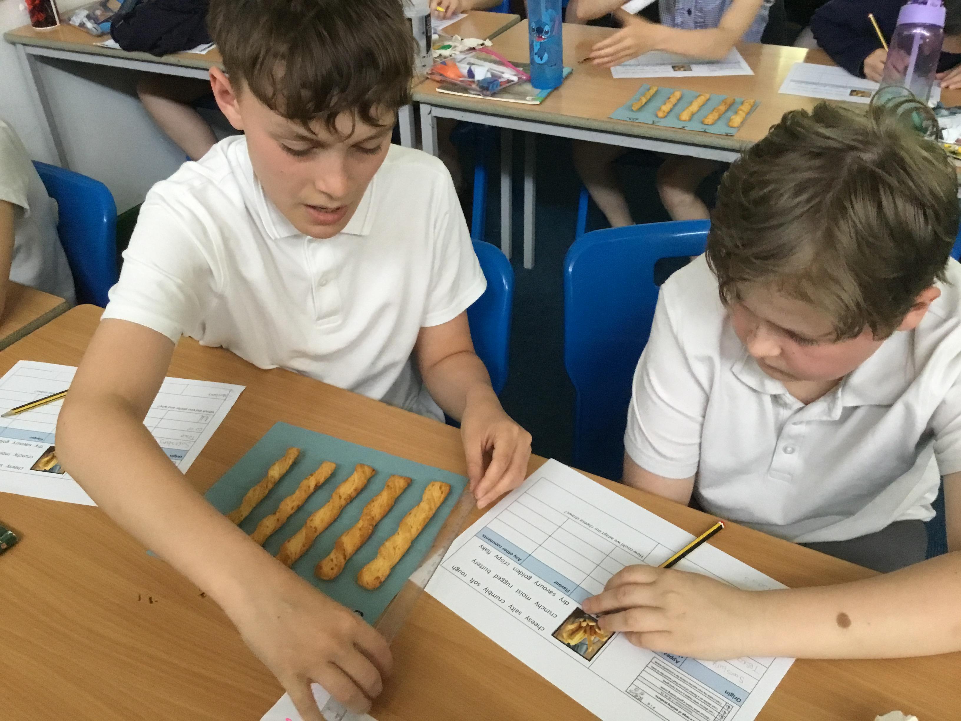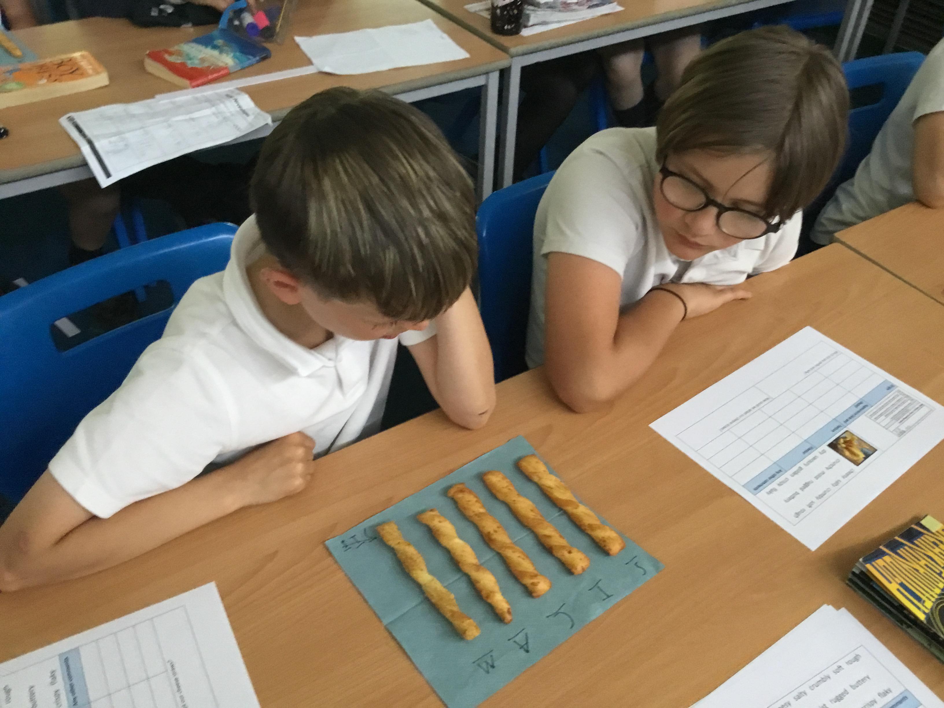 Wednesday 30th April - DT - Here we are analysing the best cheese straws. It got pretty serious when the rulers came out!