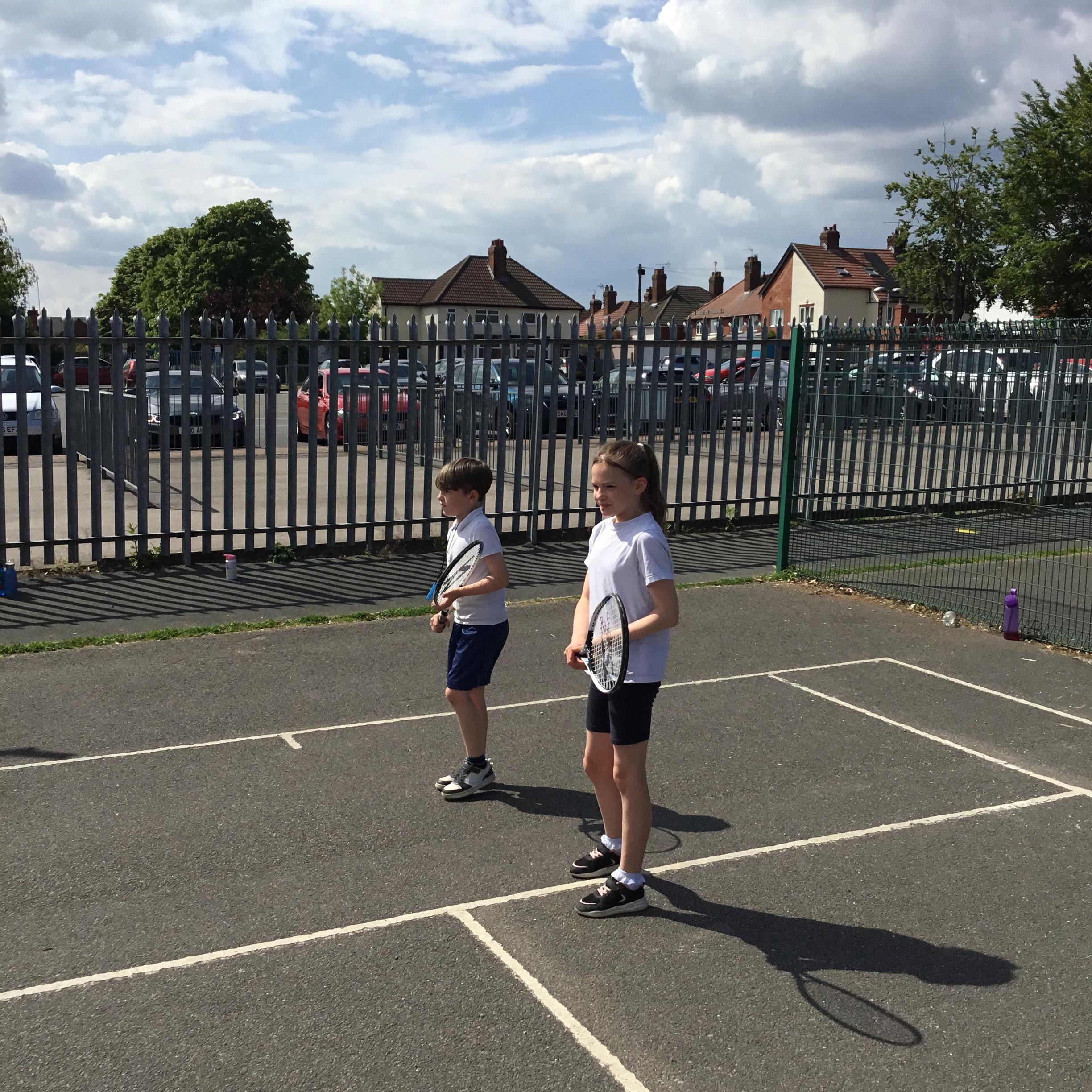We have been developing our tennis skills this term and today we finished this block with some great games of doubles in the sunshine.