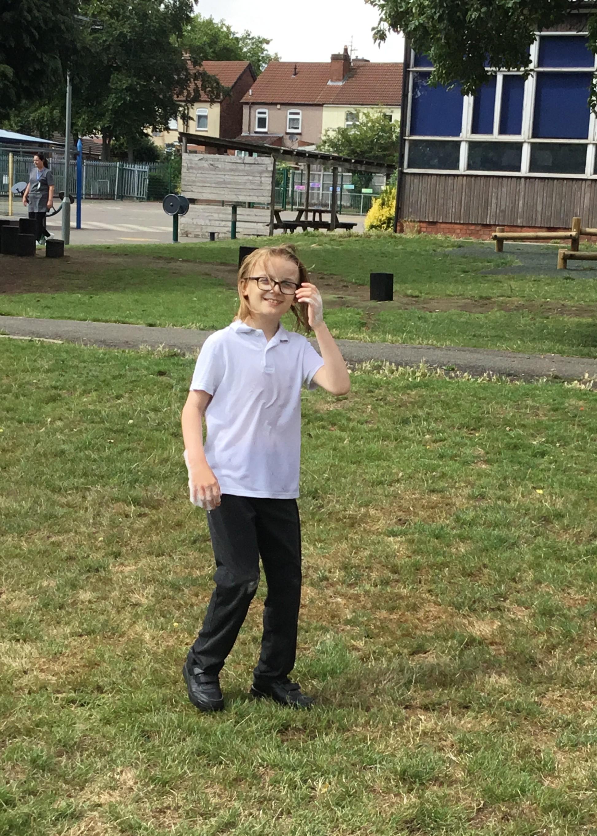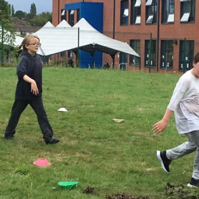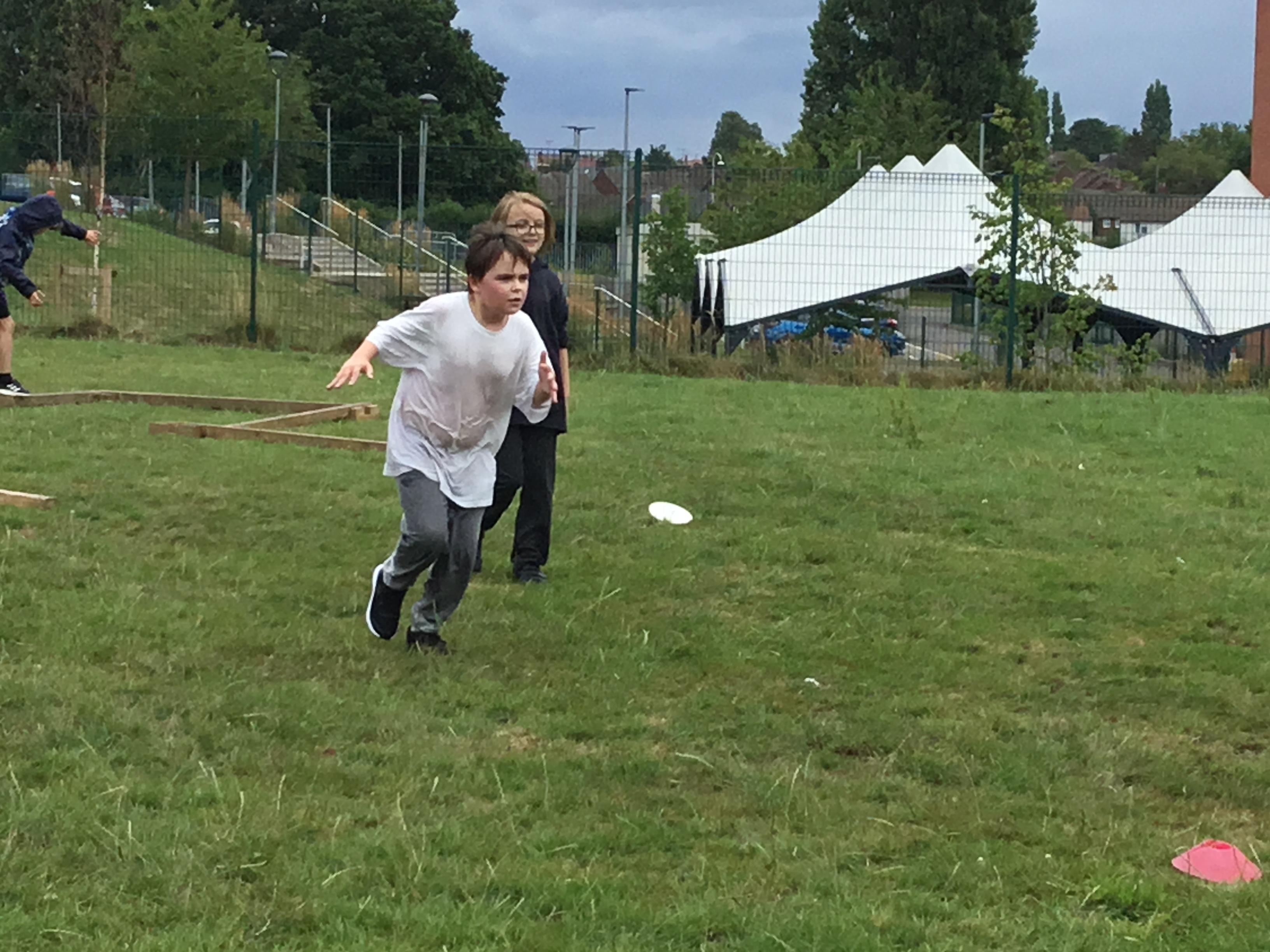 Weds 2nd July - Year 6 trip to Sherwood Forest. Enjoying playing with Frisbees in the open field.