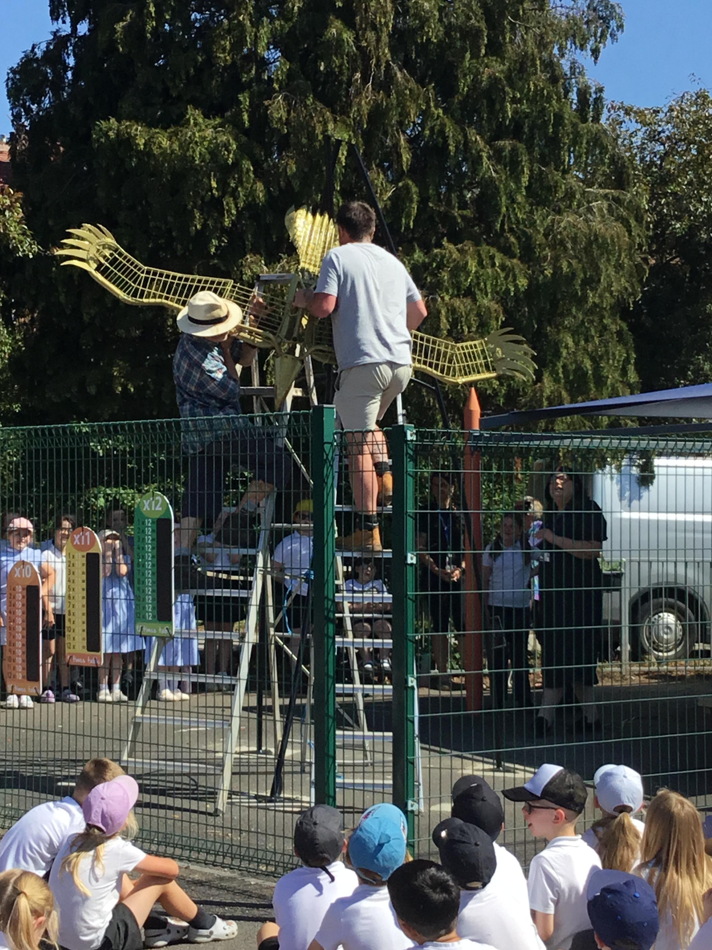 Fri 11th July - The sculpture has arrived and we wqere all on the playground th sea it being installed. Well done to our choir as well as our Year 6 ECO Council for speaking so well at the grand reveal!