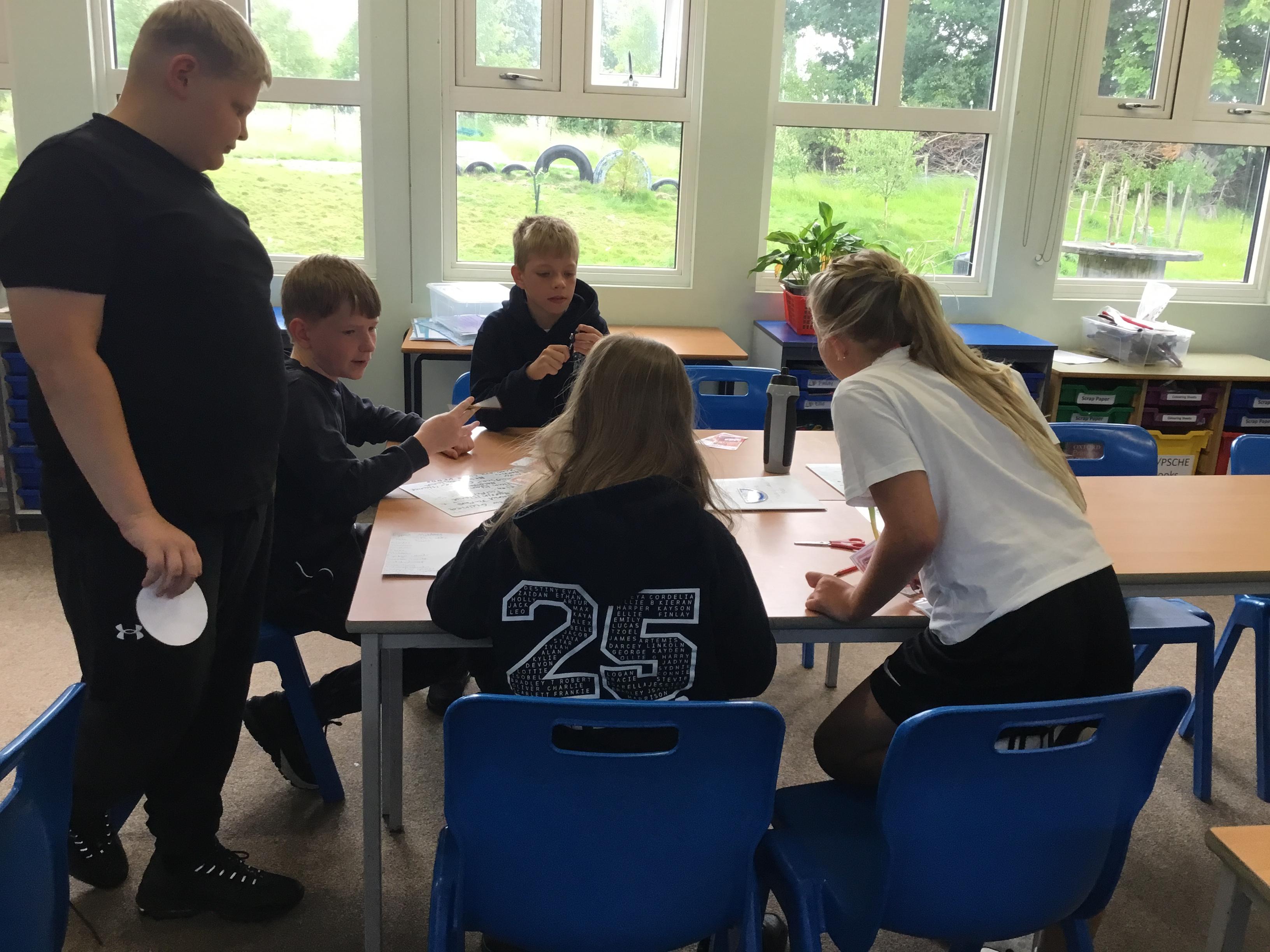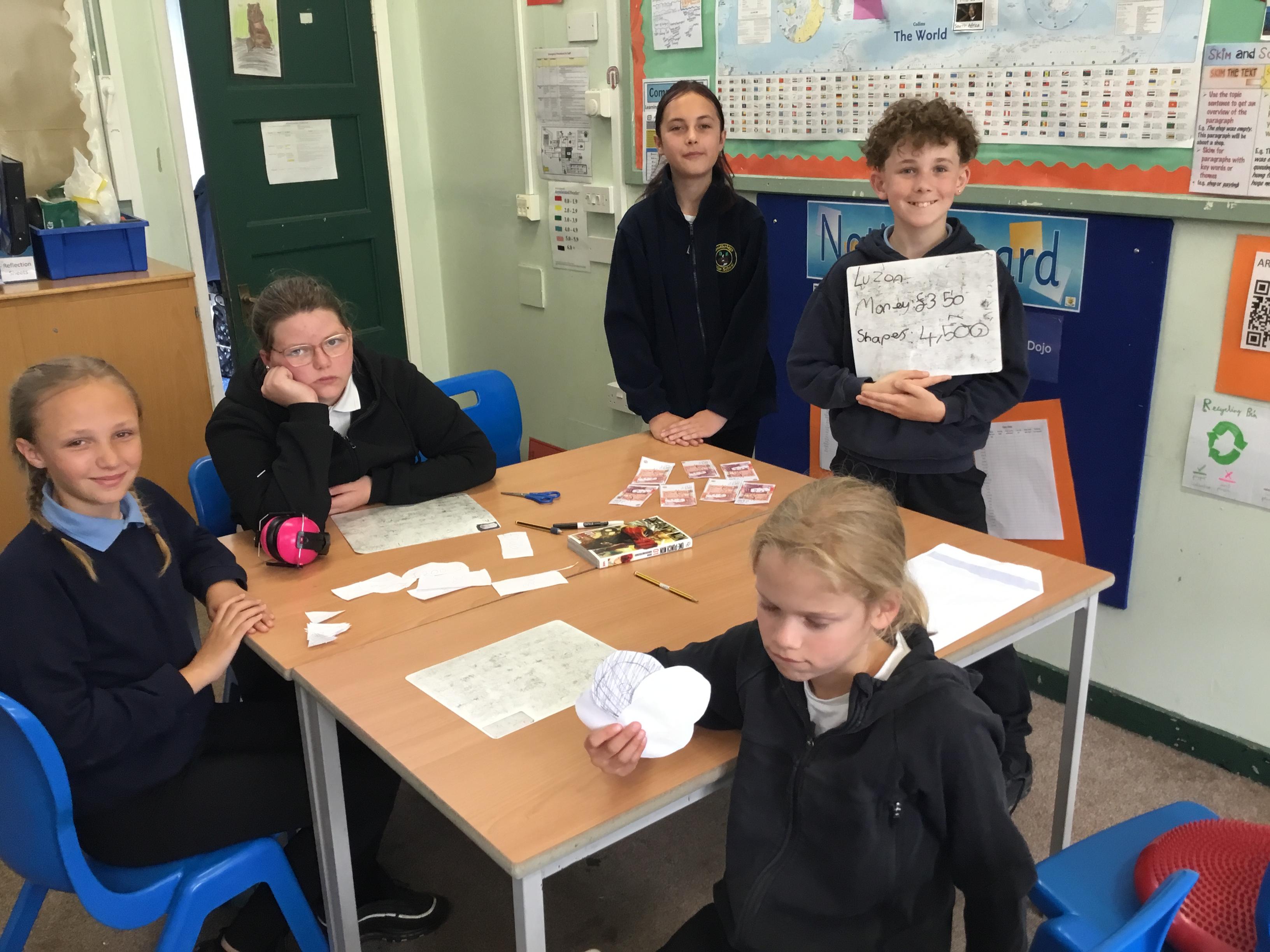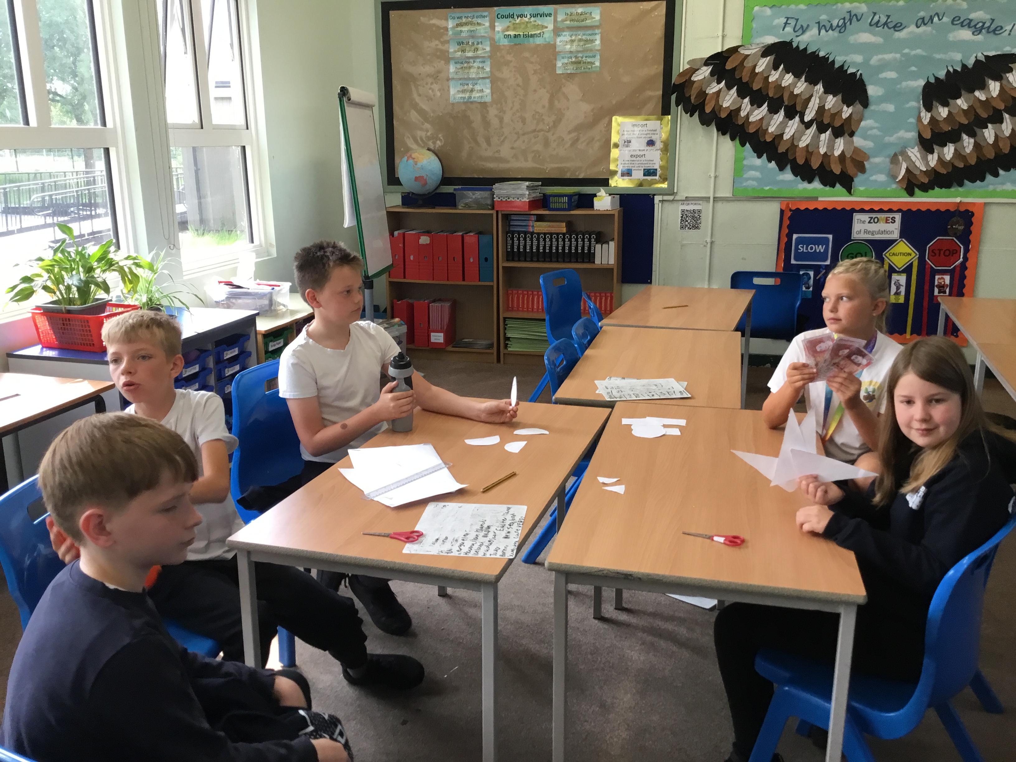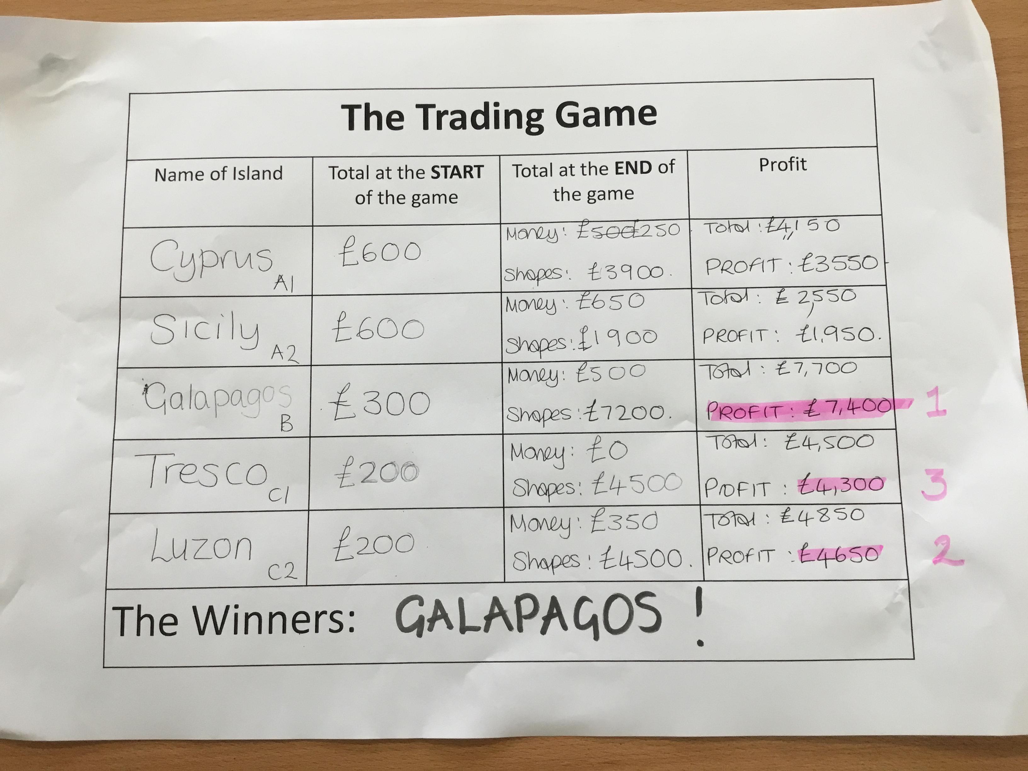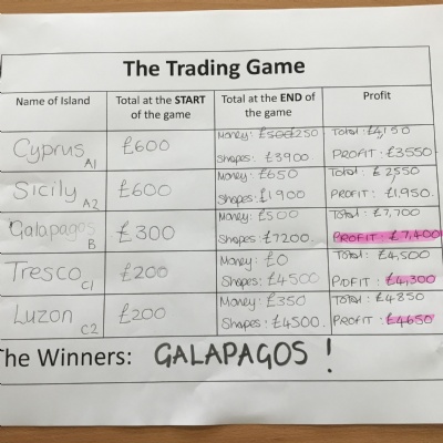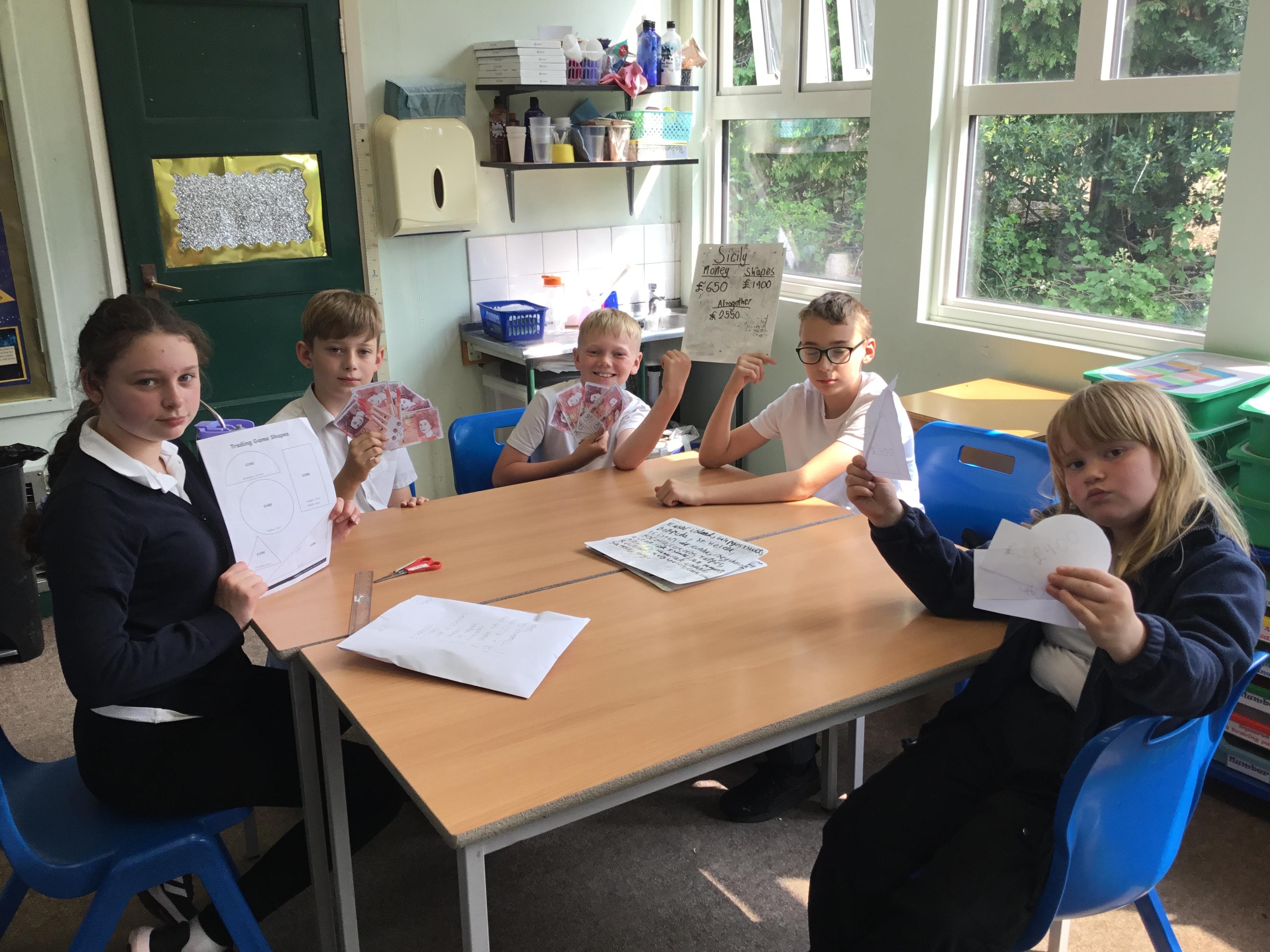Tuesday 3rd June - The Trading Game. To introduce our new topic the class was split into "islands". Each island had to trade with the others for pencils, paper, rulers etc so they could draw shapes. Each shape had a monetary value. Some islands hardly had any resources so had to learn quickly how to barter and negotiate!