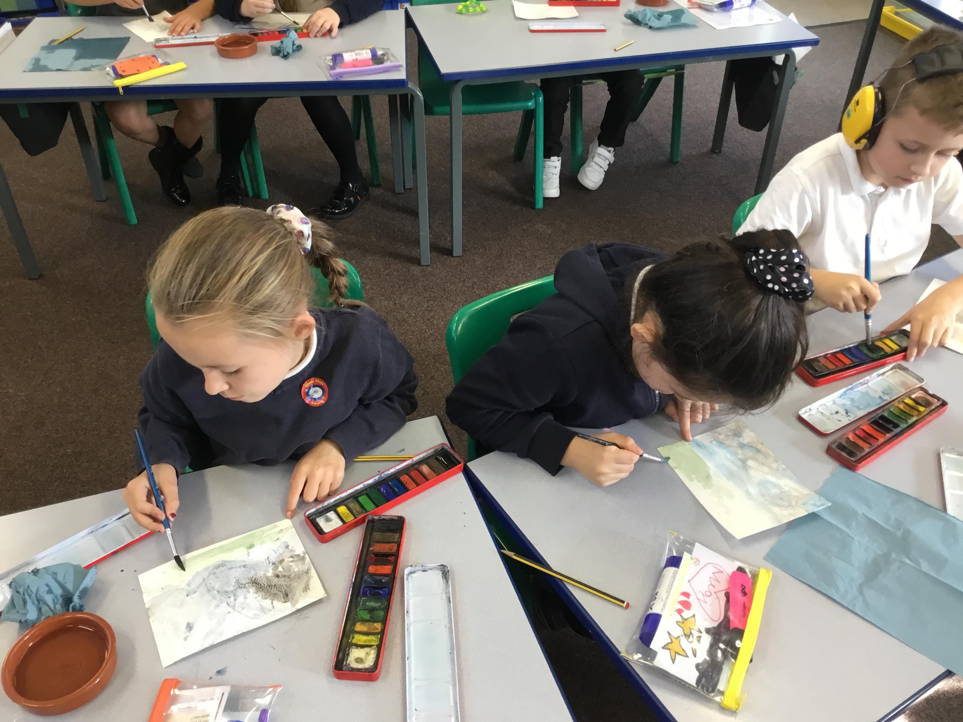 In week 2, we looked at the features of our local town Alfreton in geography. In art we explored the effects of watercolours and in music we looked at djembe drums. We continued athletics in P.E and used 100s, 10s and 1s counters in maths.
