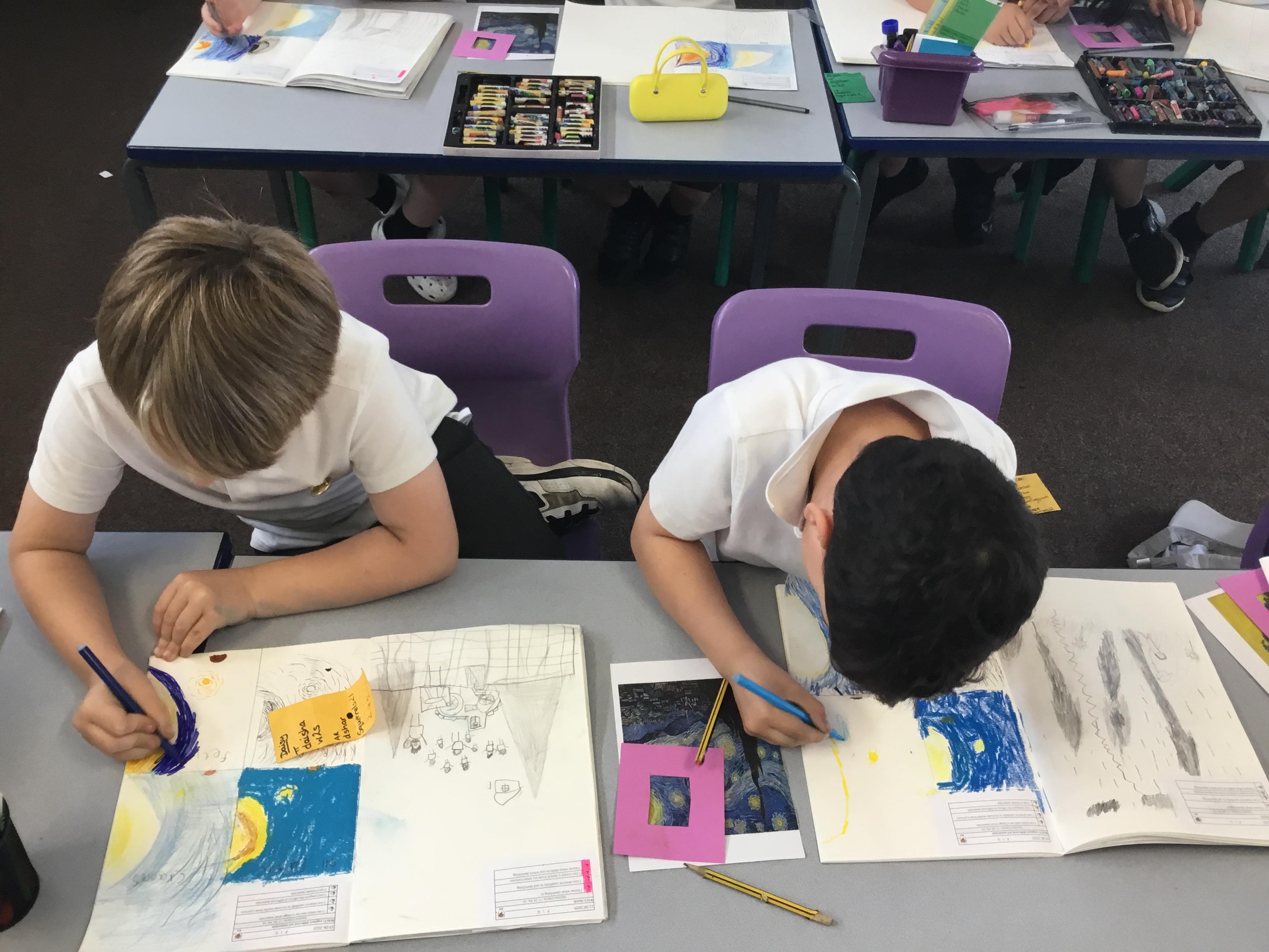 This week we began to practice some activities for sports day, explored how shadows change with the direction of light and explored different materials to represent Van Gogh’s artwork. In English, we wrote an introduction paragraph for our narrative and began to write our plan. We concluded our topic on time in maths and began a unit on shape.