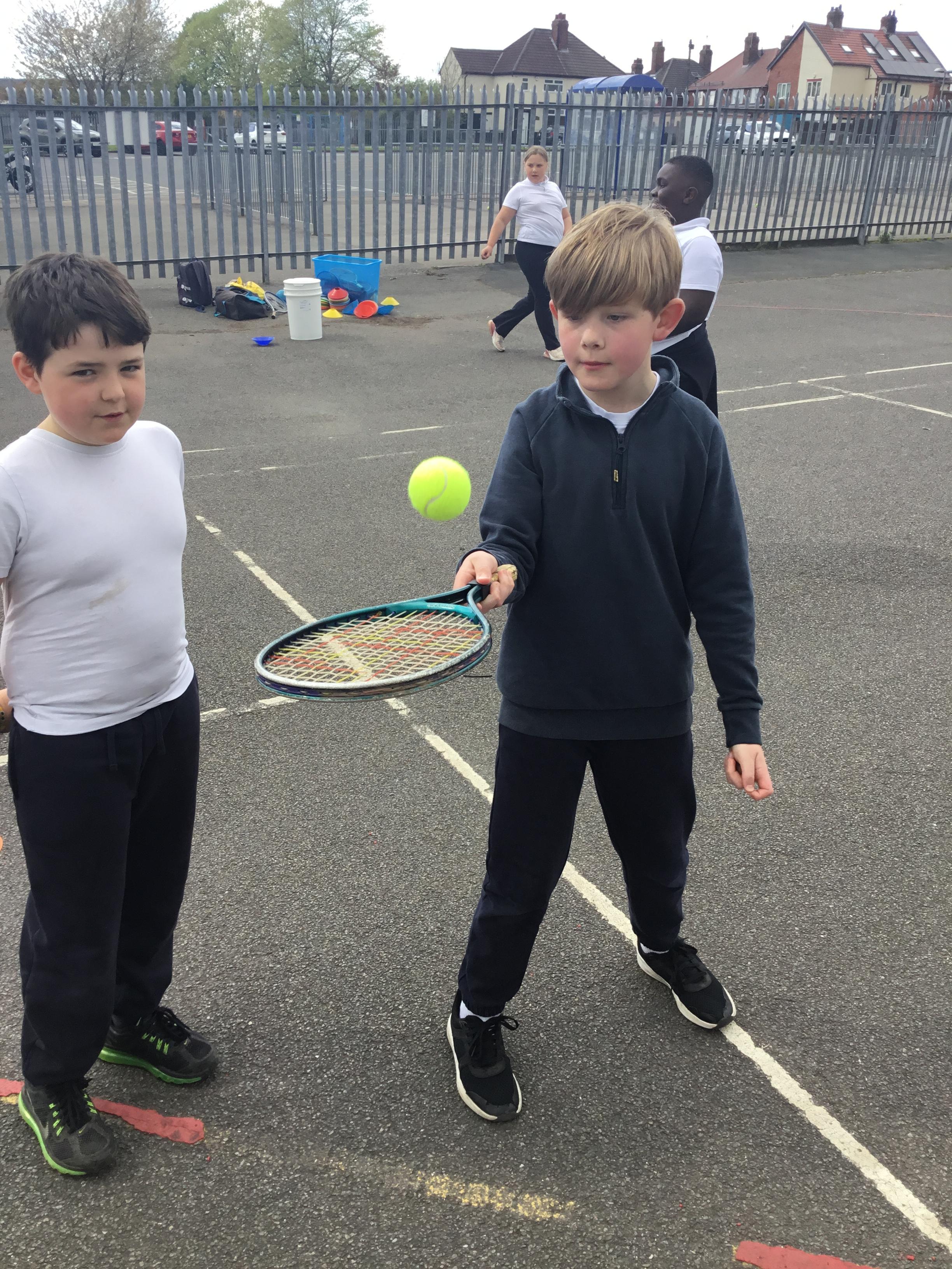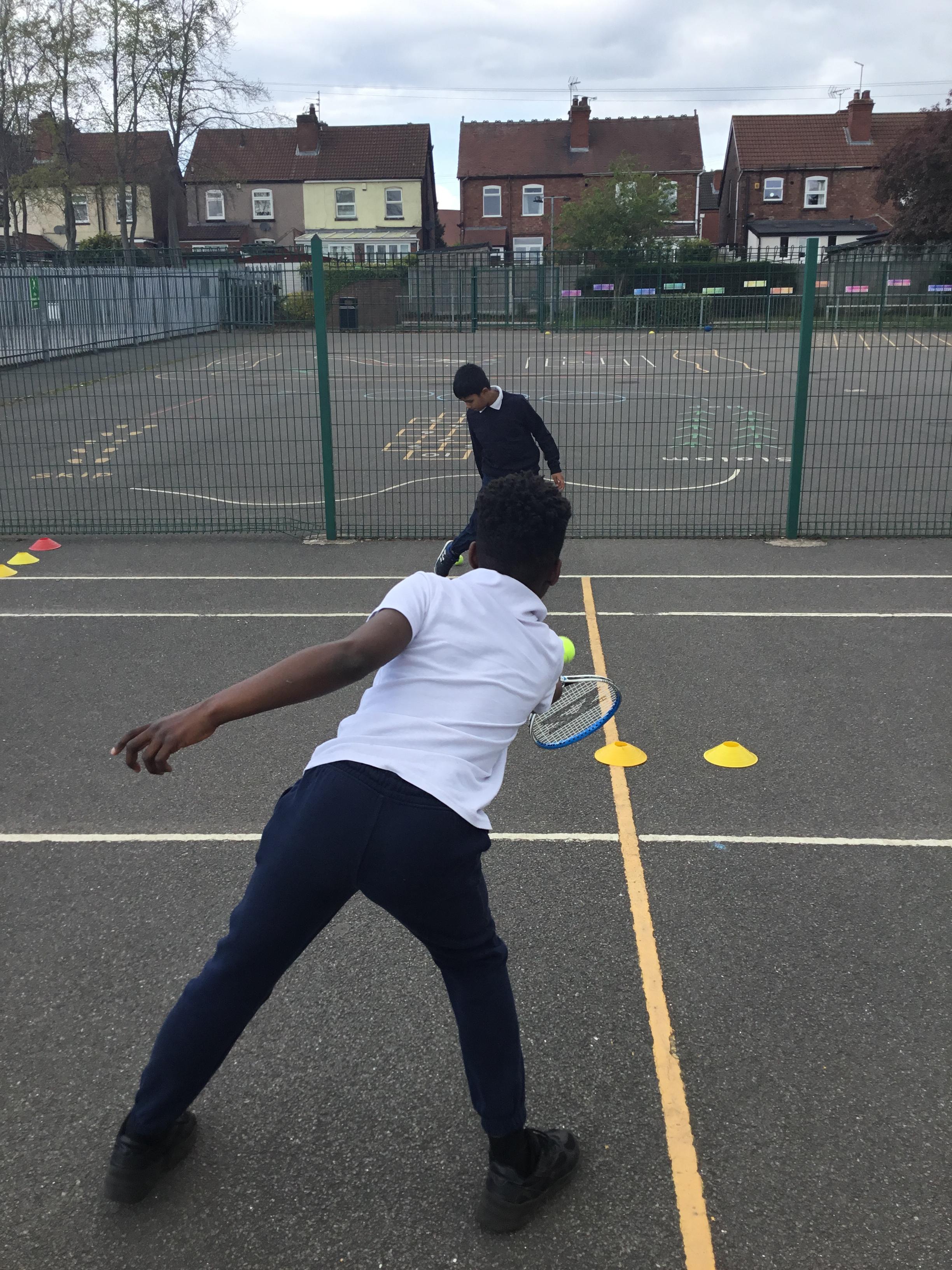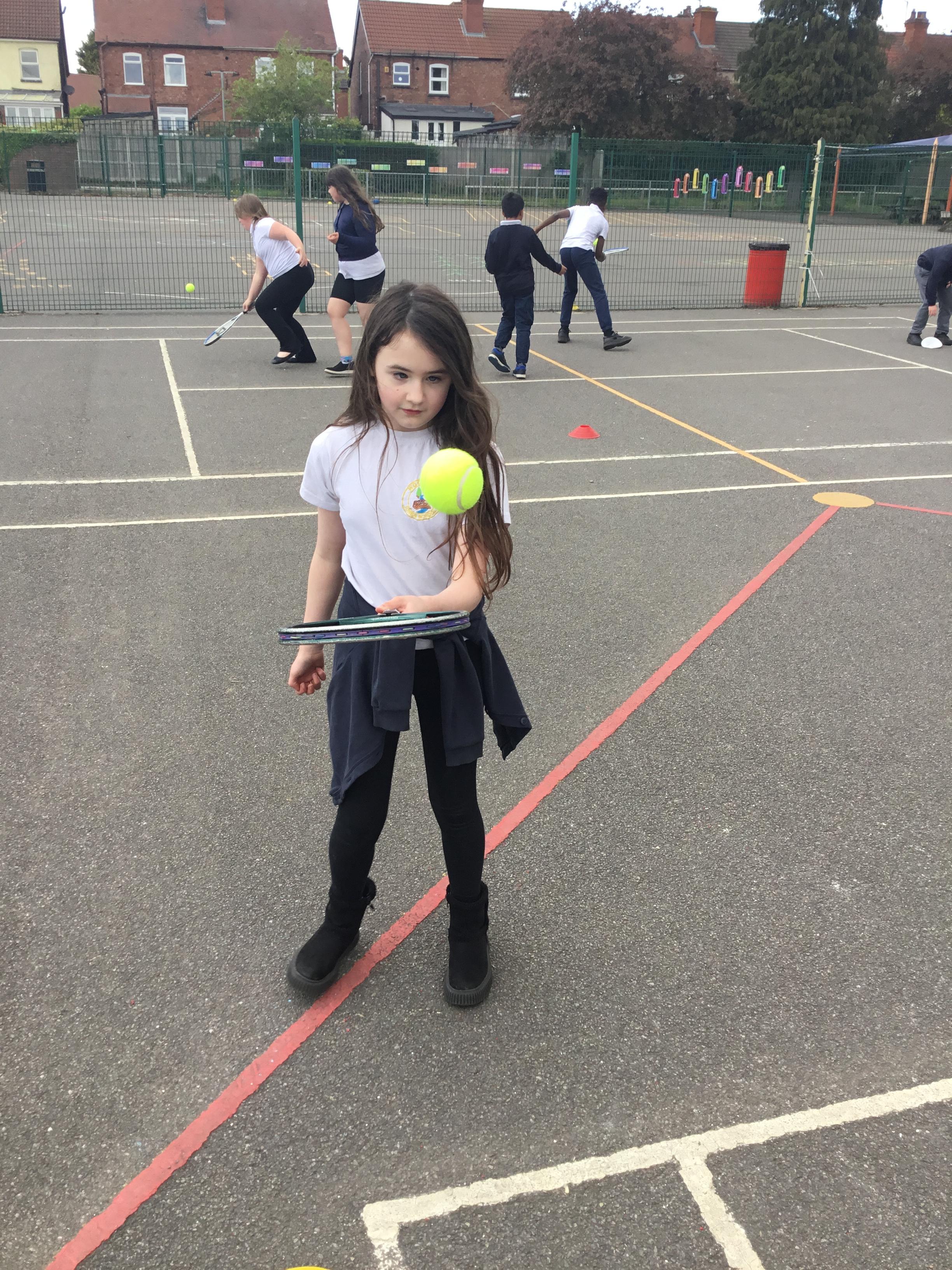 PE - Our tennis skills are improving just in time for the summer weather!