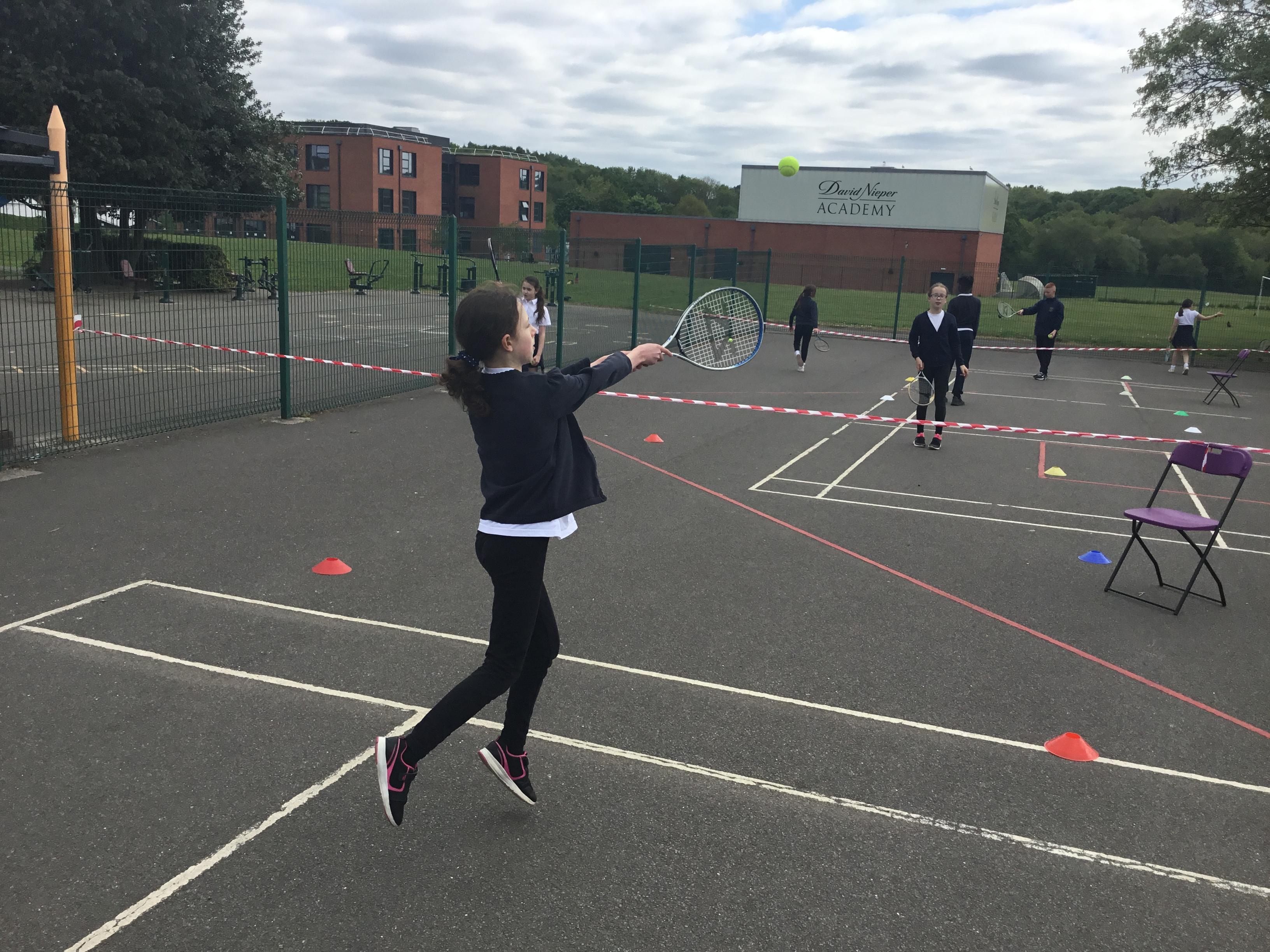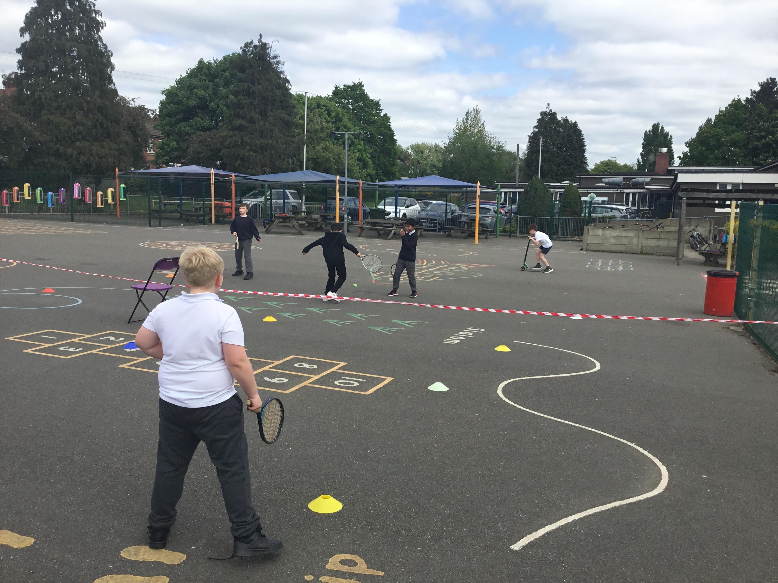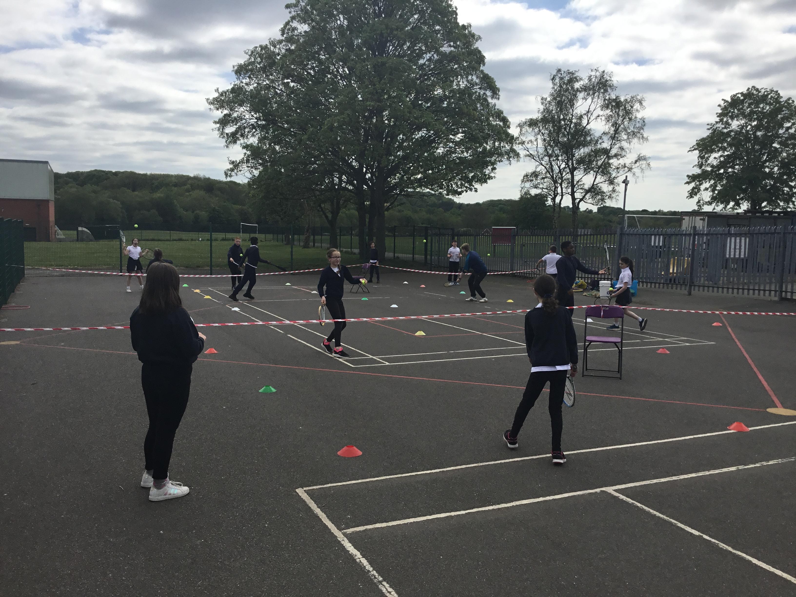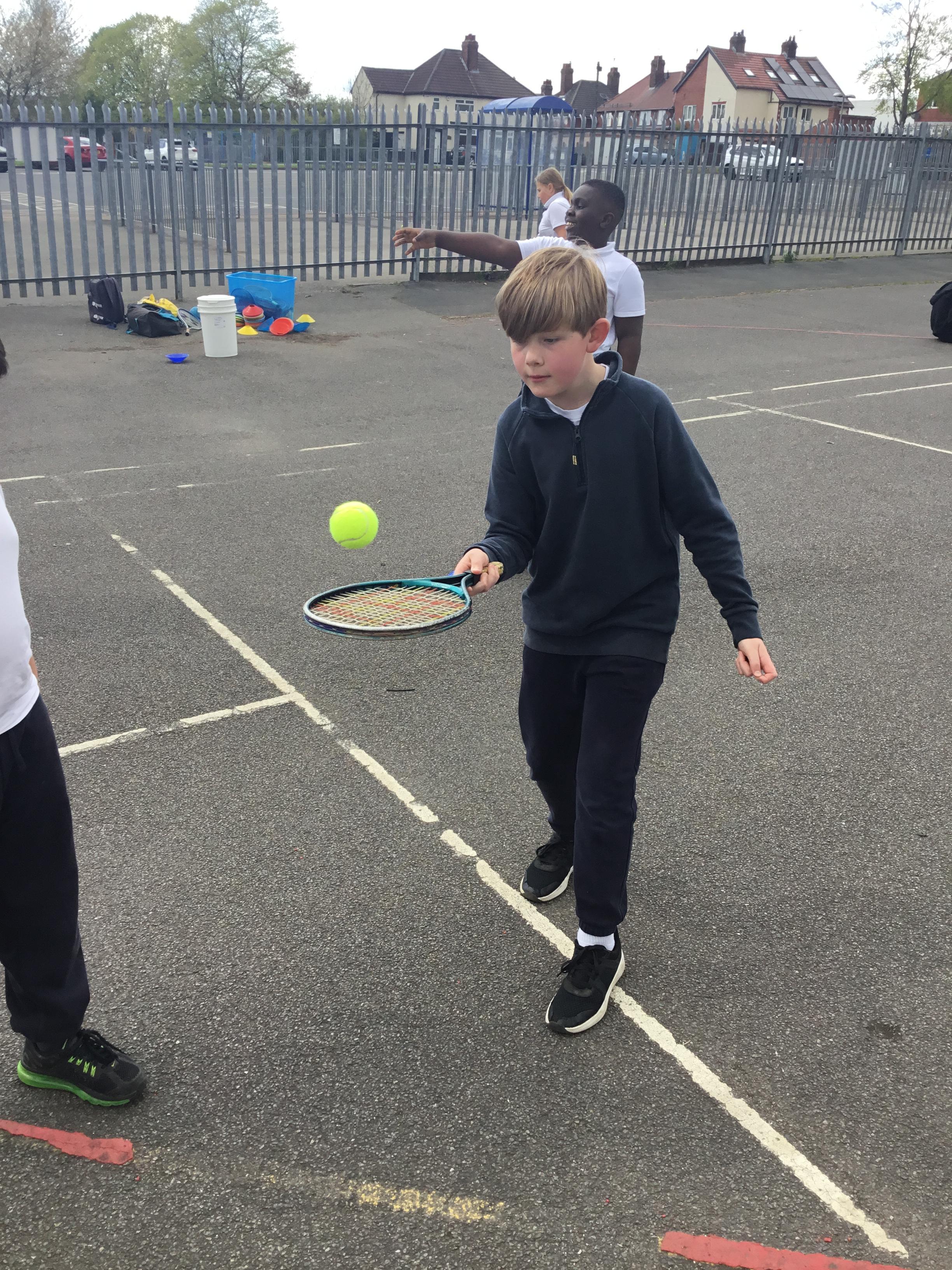 PE - Our tennis skills are improving just in time for the summer weather!