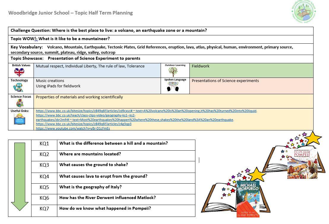 This half term, we will be exploring geography. We will be learning how mountains, volcanoes and earthquakes are formed. We will learning how to use grid references to locate different mountains and volcanoes across the world. We will be exploring different aspects of Italy and looking at the impact a volcanic eruption had on the lives in Pompeii.