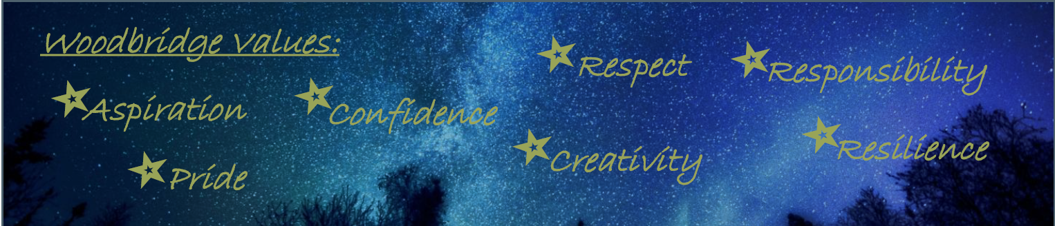 • Our school embeds our Woodbridge Values, which underpin all that we do and are integral to our learning and ethos every day.