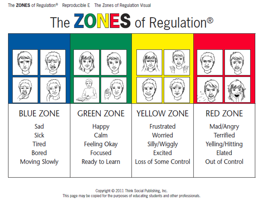 Children are reassured there are no 'naughty zones' but that everybody (including adults) experience all the zones at some point and this is normal. We start to teach pupils that how we react in each of these zones is what we can learn to control. The zones are summarised in the poster below: